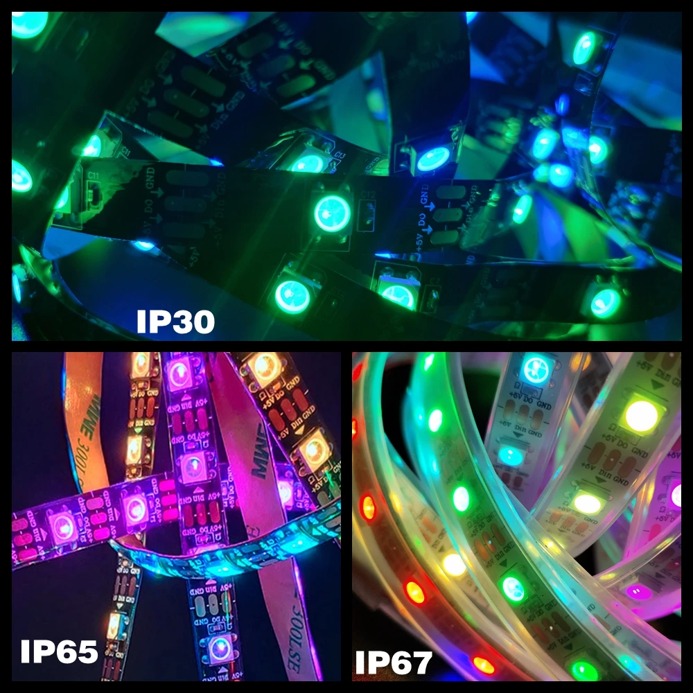 Умная Светодиодная лента WS2812B, индивидуальное управление RGB, 30607496144 светодиодовметр, домашнее украшение для интерьера, IP30IP65IP67, 5 в пост. Тока