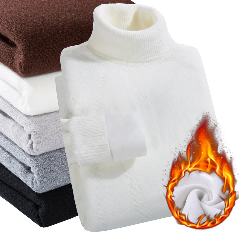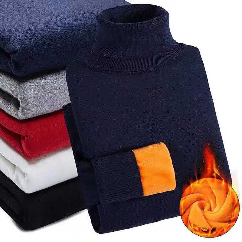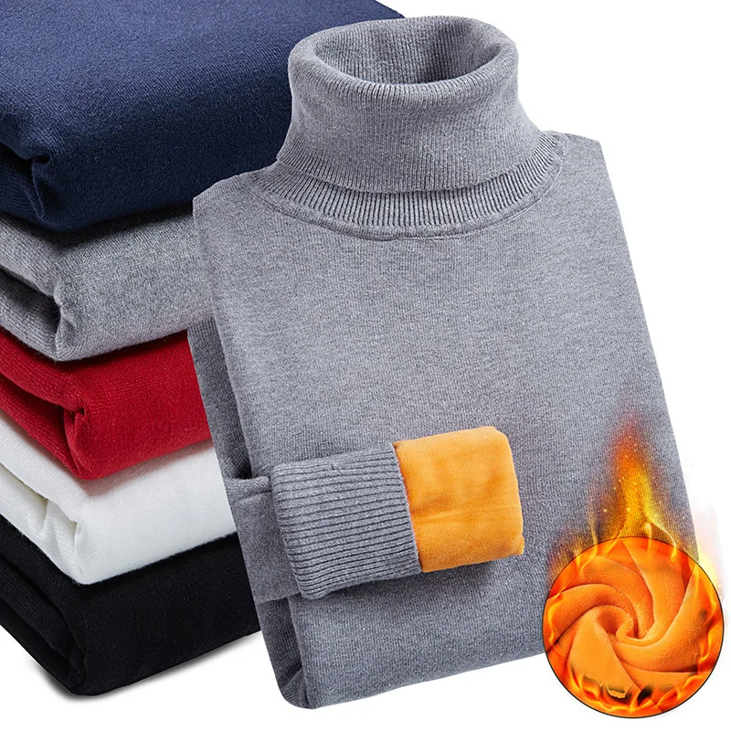 Мужская теплая водолазка, тонкий мягкий флисовый пуловер с высоким воротом, однотонный вязаный плотный свитер с золотым бархатом, зима 2020