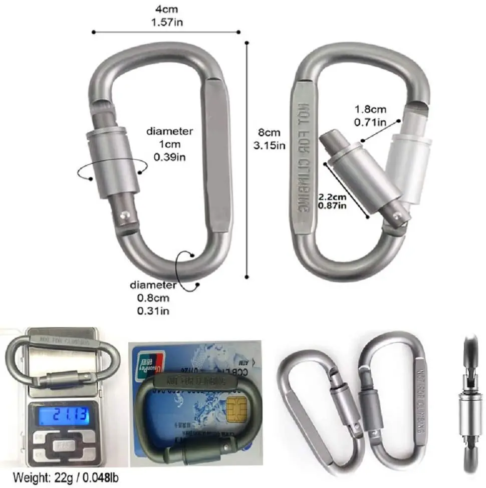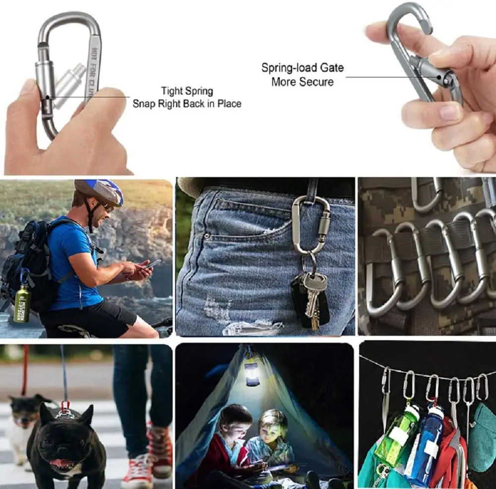 6 упаковок, фиксирующий карабин, пружинный алюминиевый d-образный кольцевой светильник, для отдыха на природе, организации, брелок, замок для ворот
