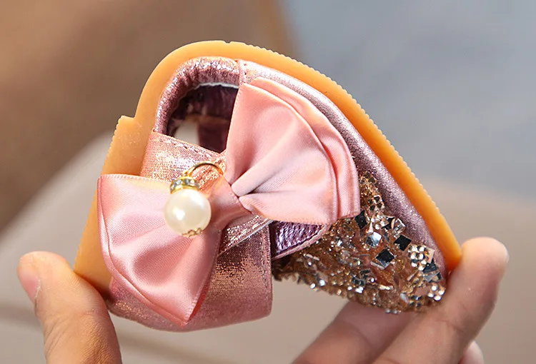 FOCUSNORM четыре сезона принцессы новые детские кожаные туфли для девочек на плоской подошве с блестками и бантом с жемчугом детская обувь для девочек