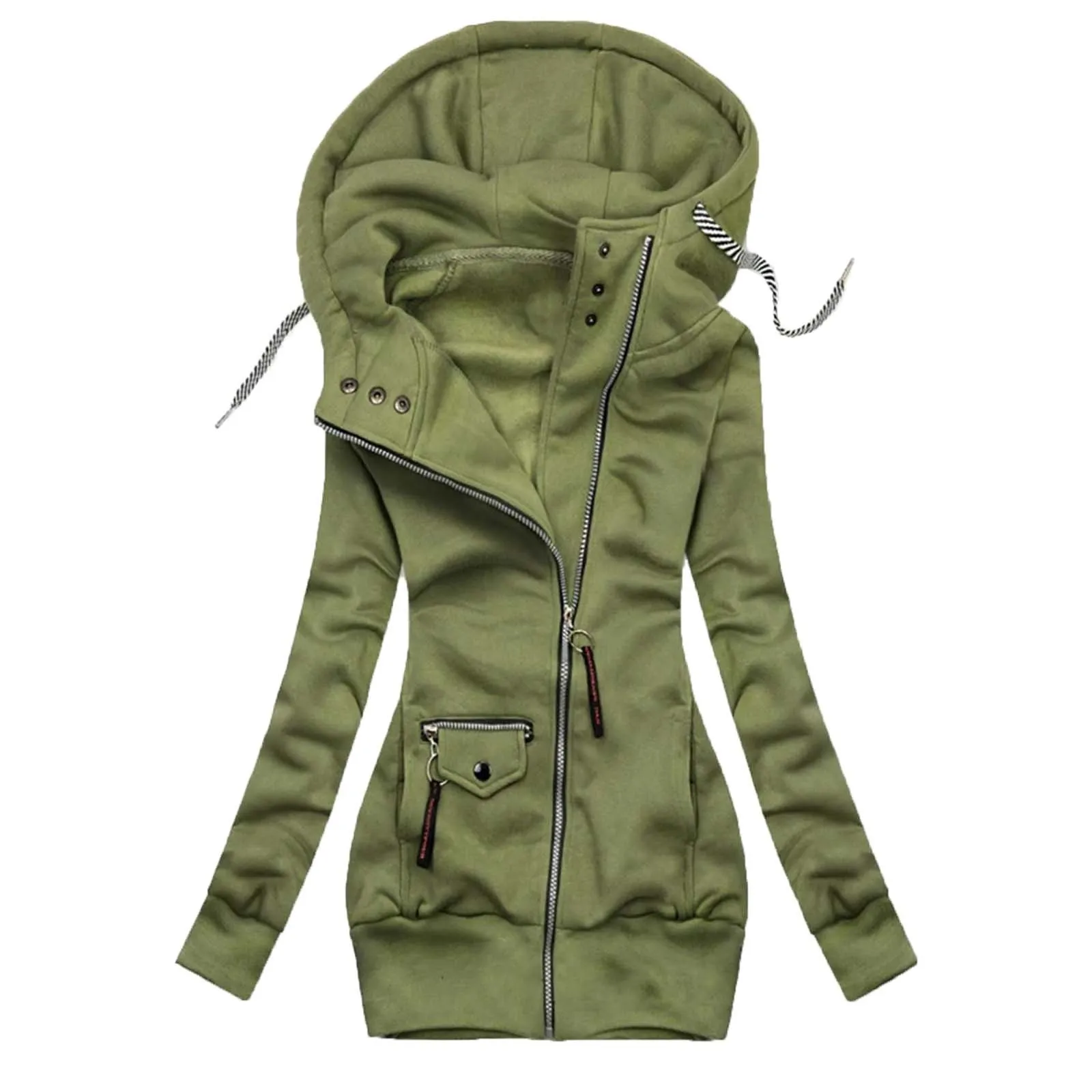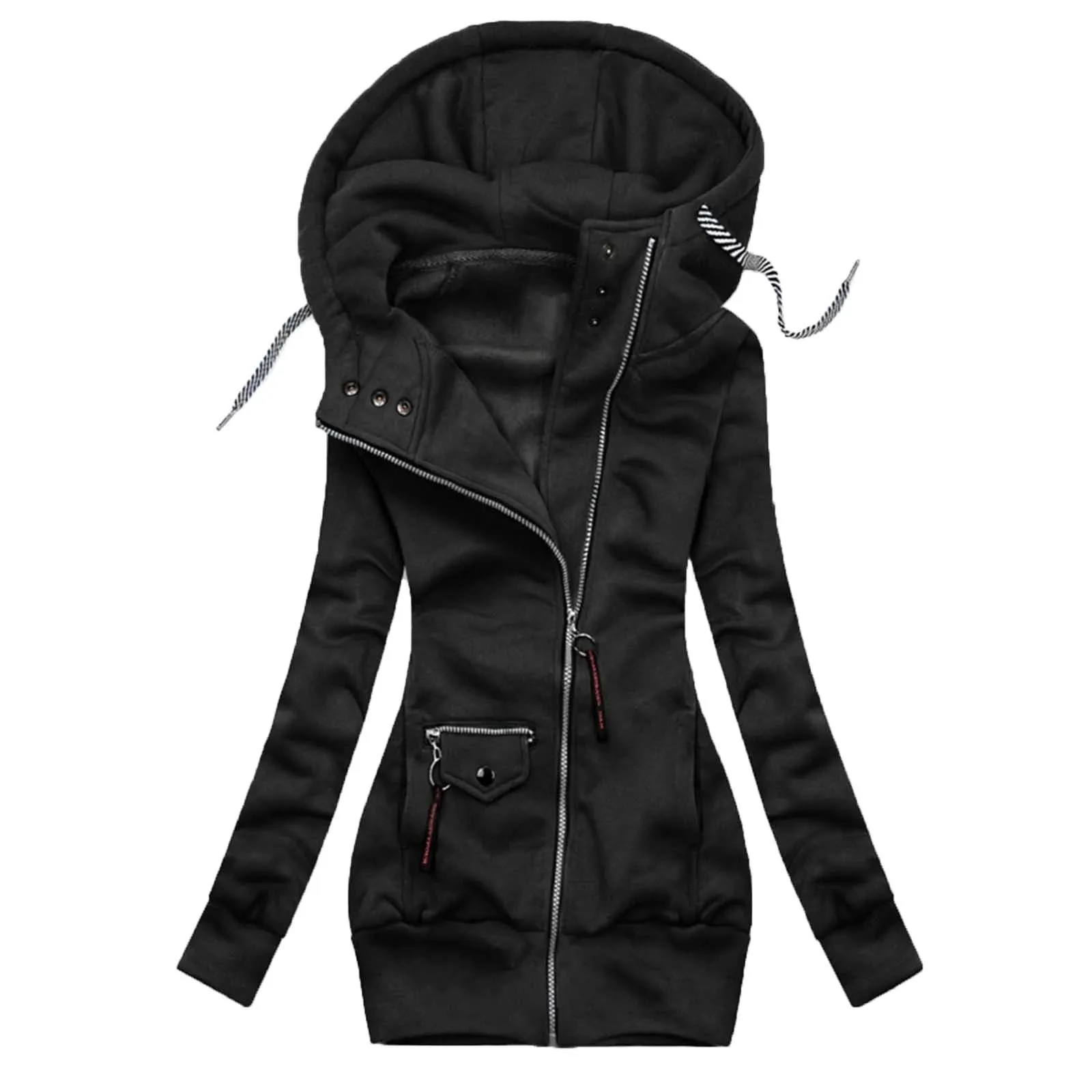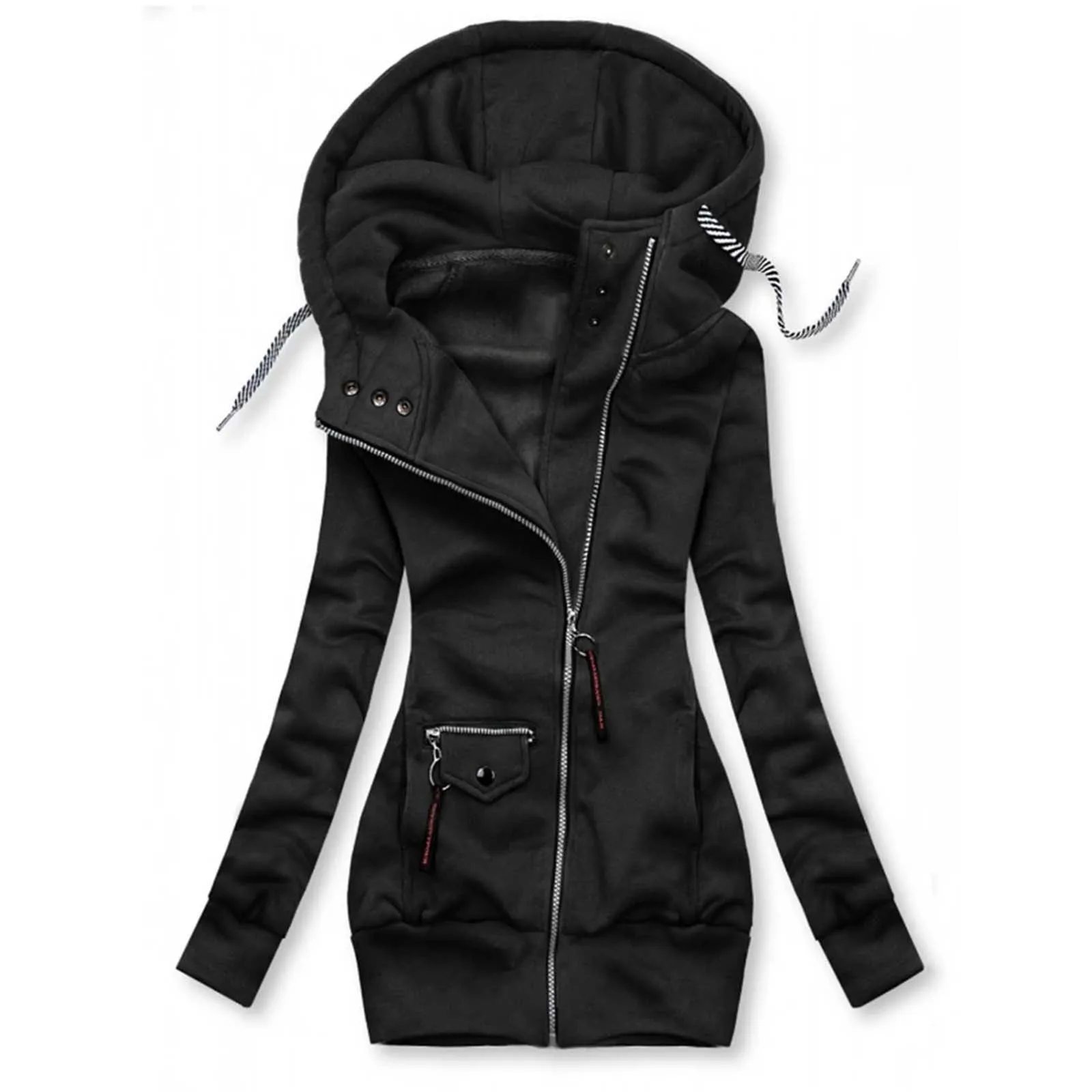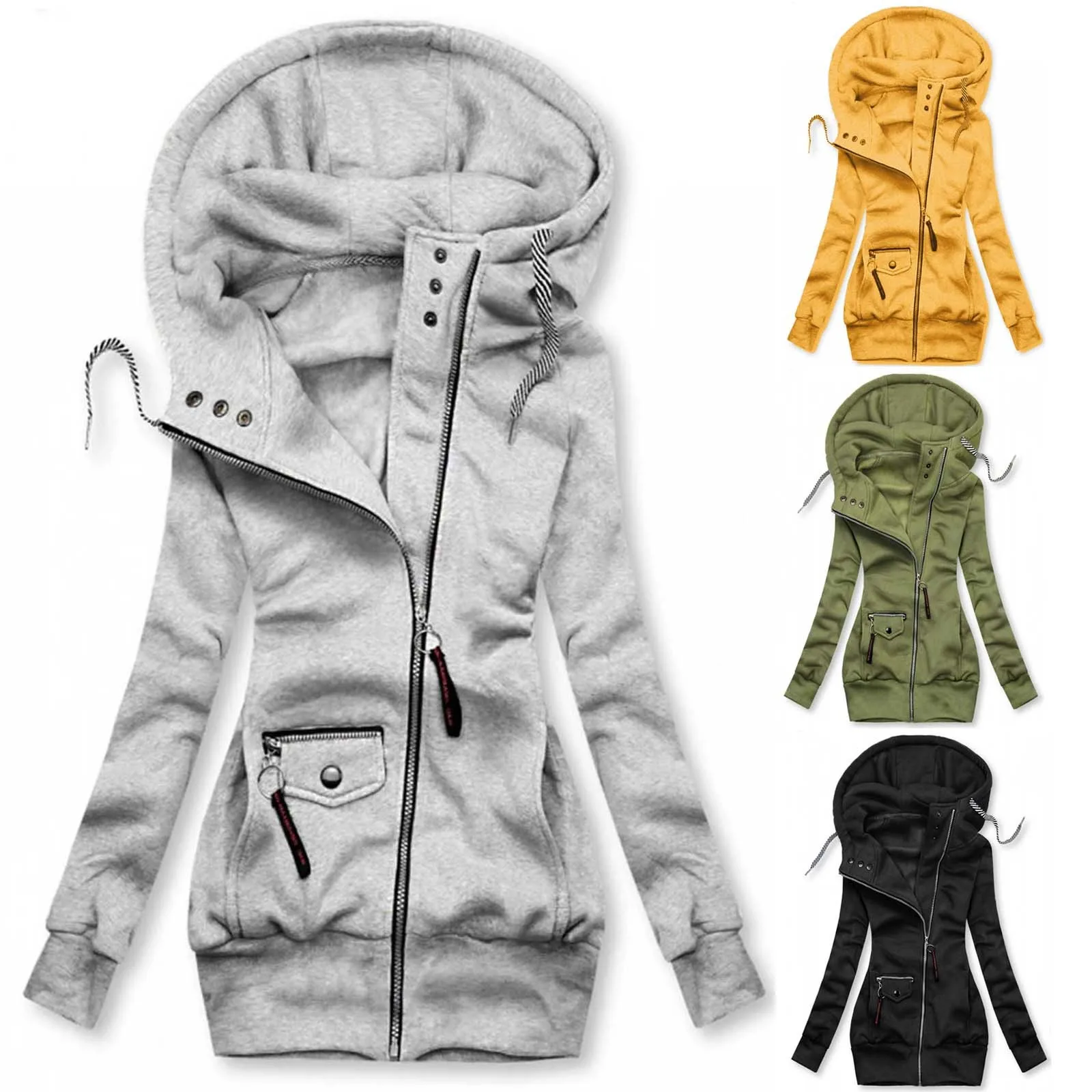 Женская толстовка с капюшоном, Длинная толстовка в уличном стиле с капюшоном на молнии, Осень-зима, элегантная буква