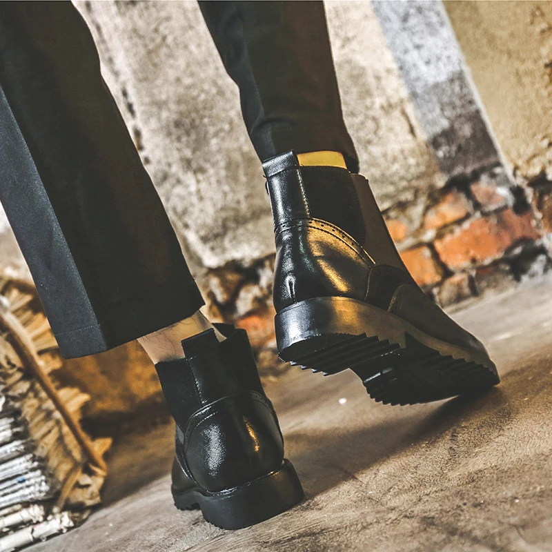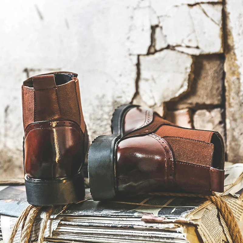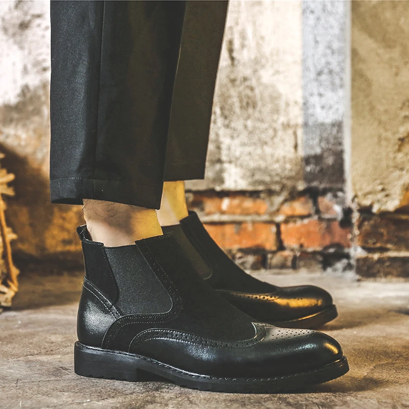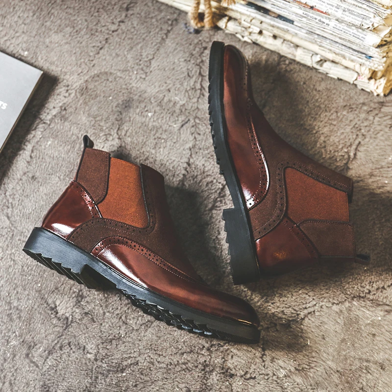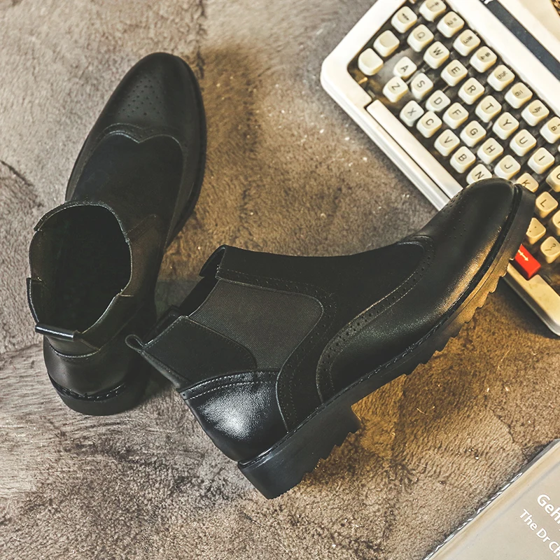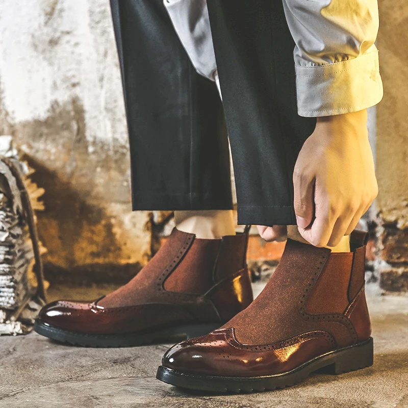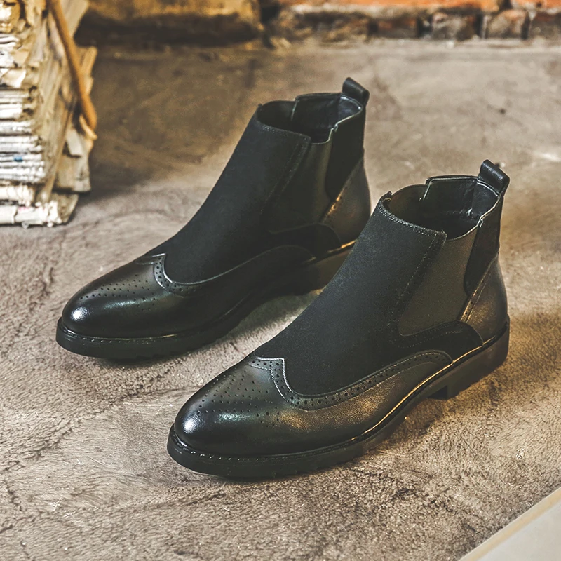 Yomiorповседневная мужская обувь в винтажном стиле ботильоны из спилка с острым носком свадебные ботинки на платформе ботинки Челси с перфорацией типа броги слипоны