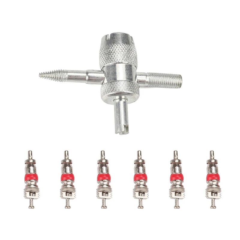 Подходит для стандартных сердечников клапанов-легковых автомобилей, грузовиков, мотоциклов, велосипедов, квадроциклов, прицепов газонокосилок и т. Д. С помощью этого полезного 4-стороннего инструмента для шин вы можете легко и удобно установить и удалить сердечник клапана.