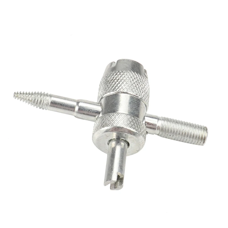 Функции: удаляет и устанавливает сердечники клапанов. Повторно отводит резьбу внутри и снаружи. Reams внутри штоков клапана. Удалите сломанные сердцевины с помощью уникального резьбового инструмента для спуска шины. Удалите вложенный камень в линии шин. Может использоваться светильник качестве легкого съемника стержня.