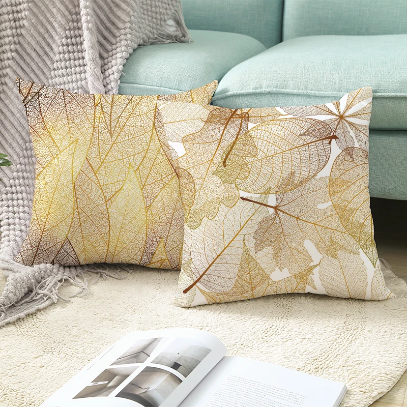 Декоративная подушка, чехол для подушки с золотыми листьями, Полиэстеровая декоративная подушка для дивана