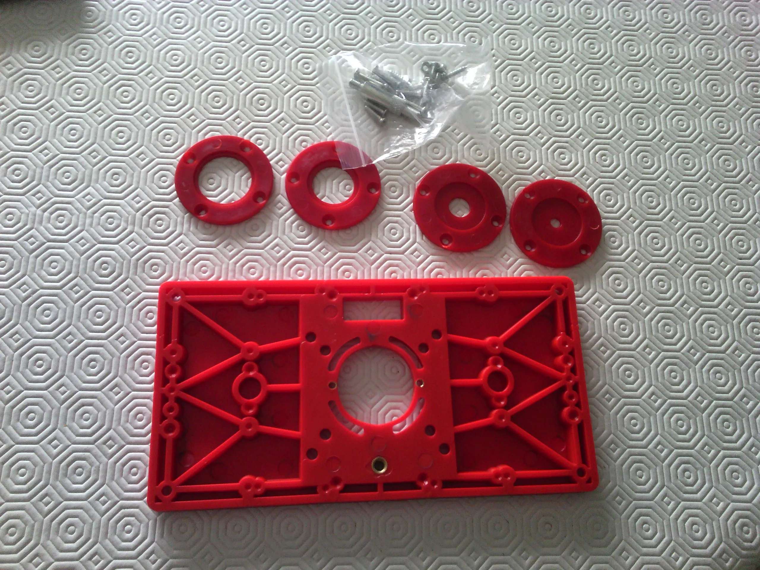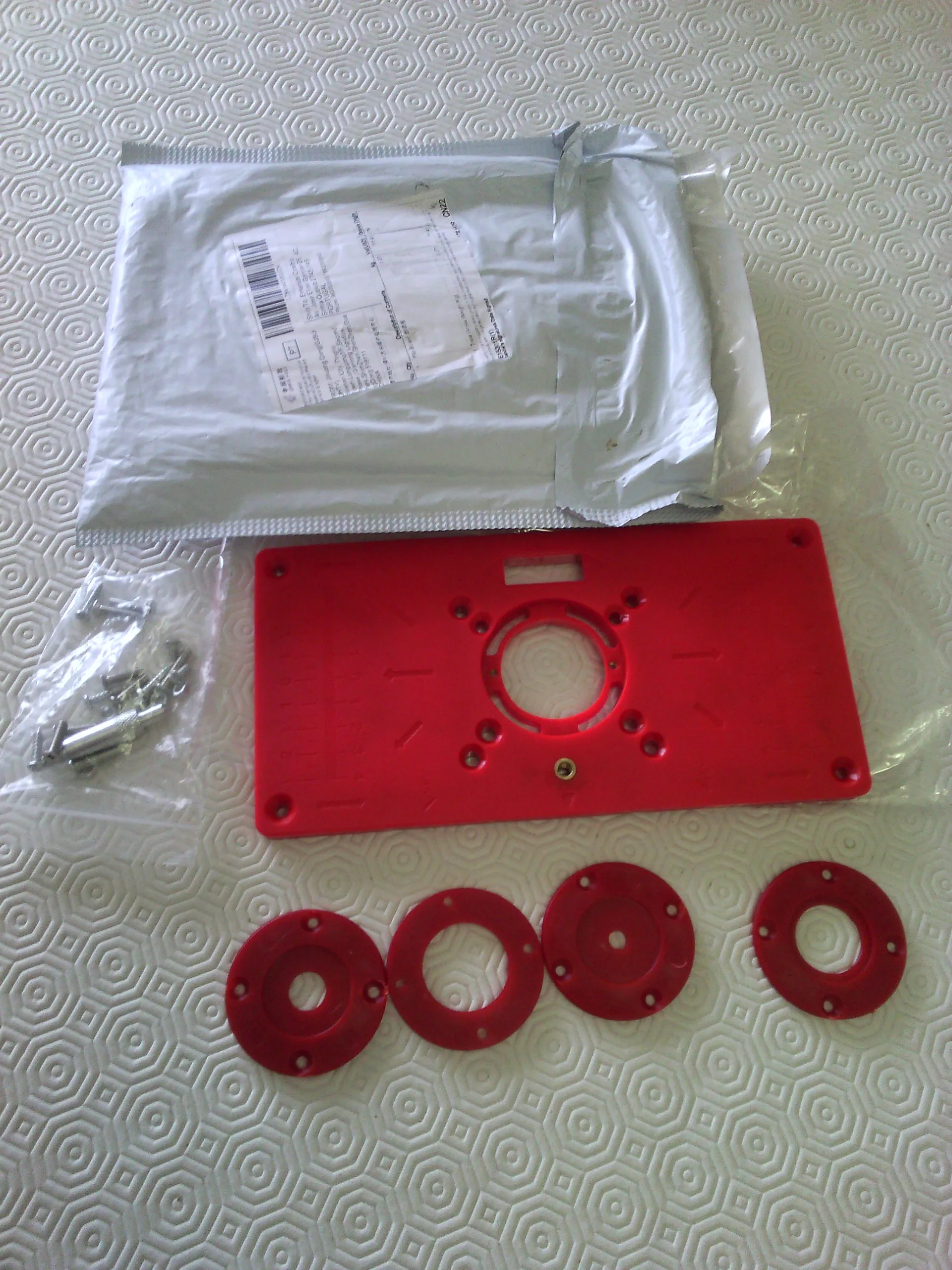 В набор деревообрабатывающих инструментов входит 1 вставная пластина для фрезерного стола, 4 роутера кольца со вставками и несколько крепежных винтов.Особенности:Пластиковый материал светильник, не деформируется, долгий срок службы, практичен в использовании и не ржавеет.Помогает обрезать машину, более безопасен и удобен в использовании.Удобная Втулка с центральным отверстием, используемая для выравнивания маршрутизатора, поэтому она находится по центру в отверстии для долота.Легко сверлить и установить роутер.Он прост в использовании и делает работу хорошо выполненной.Удобное хранение, не занимает много места.Характеристики:Материал: пластикЦвет: красныйРазмер изделия: прибл. 232*119*10 мм/9,1*4,7 * 0.4inВес изделия: 175 г/6,2 унцииПосылка: 250*130*30 мм/9,8*5,1 * дюймаВес посылка: 255 г/9,0 унцииУпаковочный лист:1 * вставная пластина для фрезерного стола4 * роутер кольца со вставками (красный)1 * набор крепежных винтов (случайное количество)