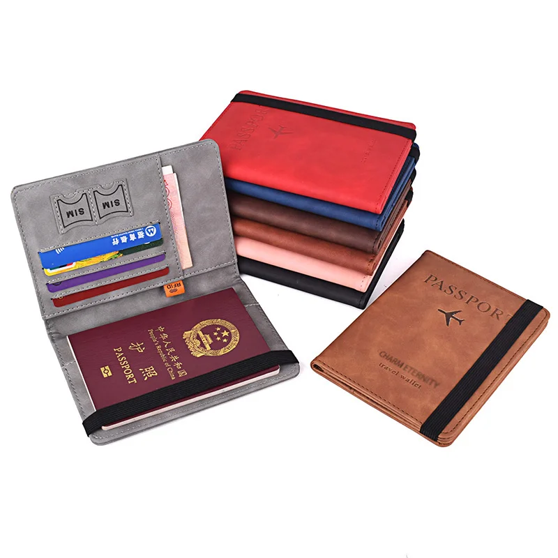 Кожаная Обложка на паспорт с эластичной резинкой, RFID-Блокировка для карт, дорожный Держатель для паспорта, кошелек, органайзер для документов, чехол для мужчин и женщин