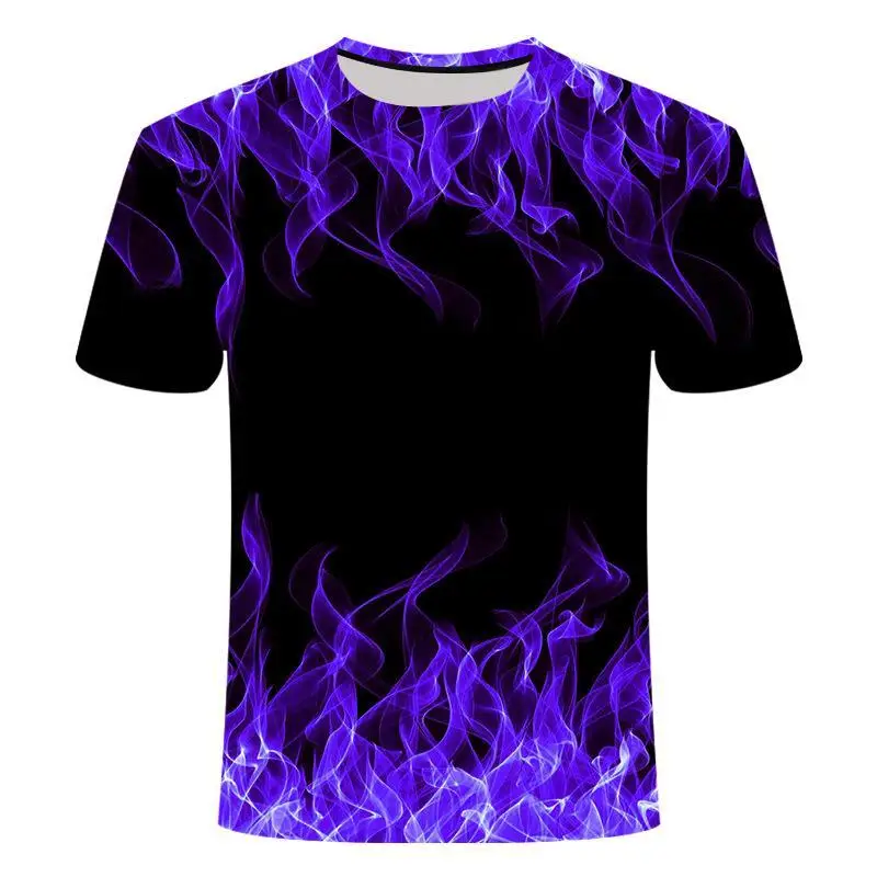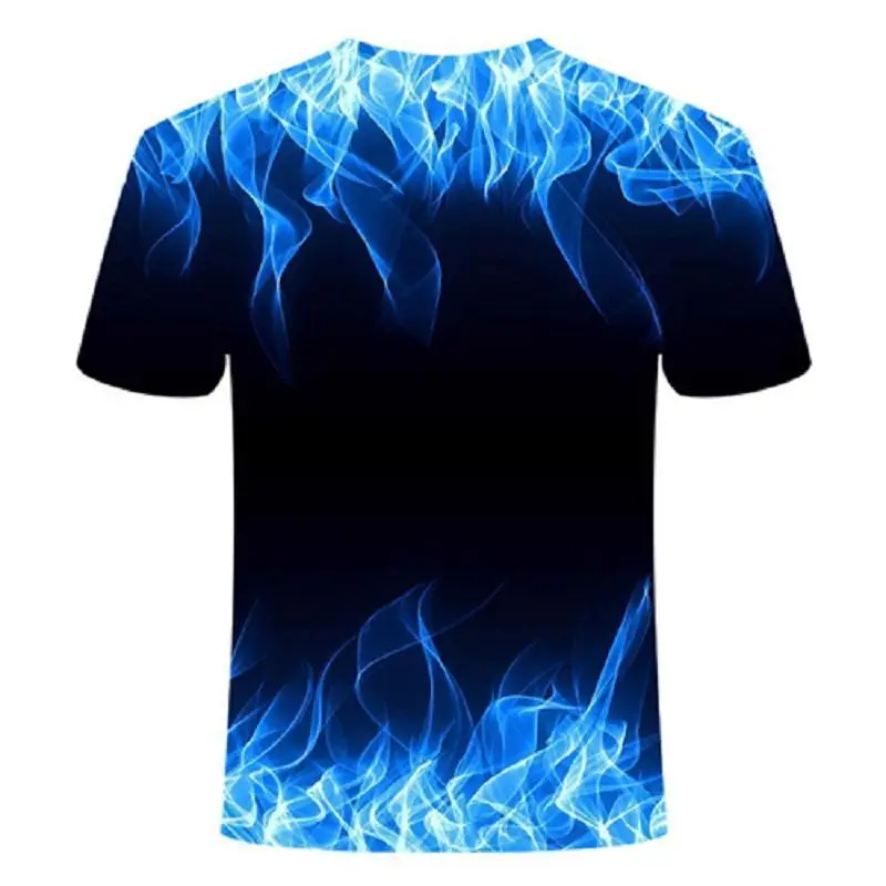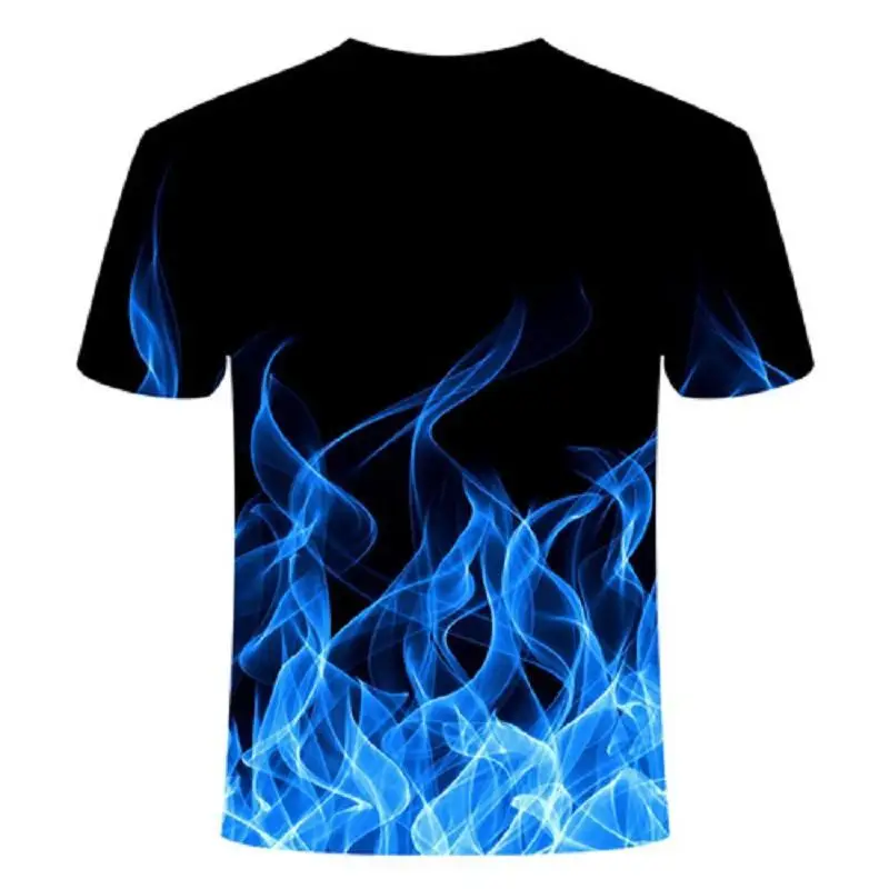 Синяя футболка с рисунком пламени для мужчин и женщин, футболка 3d,...