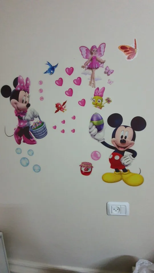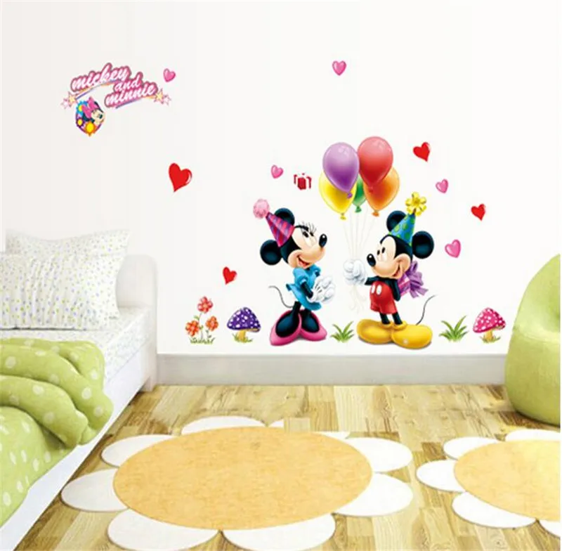 3D Мультяшные наклейки на стену с Микки и Минни для детской комнаты, спальни, настенное украшение, стикер для комнаты принцессы