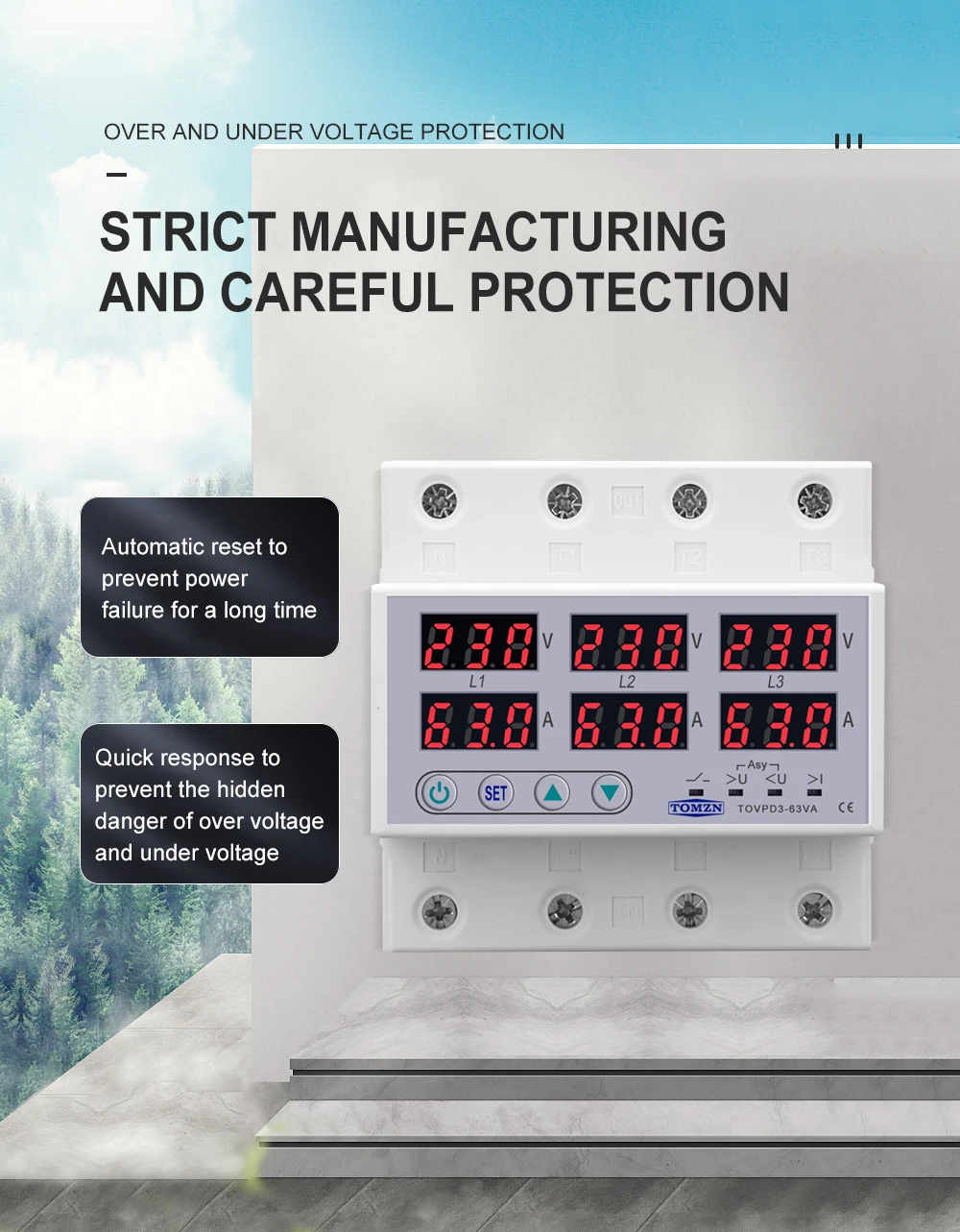 3 фазы 3 P + N Din-рейка Вольтметр Амперметр Регулируемый предельно допустимый напряжение тока защита монитора реле защита
