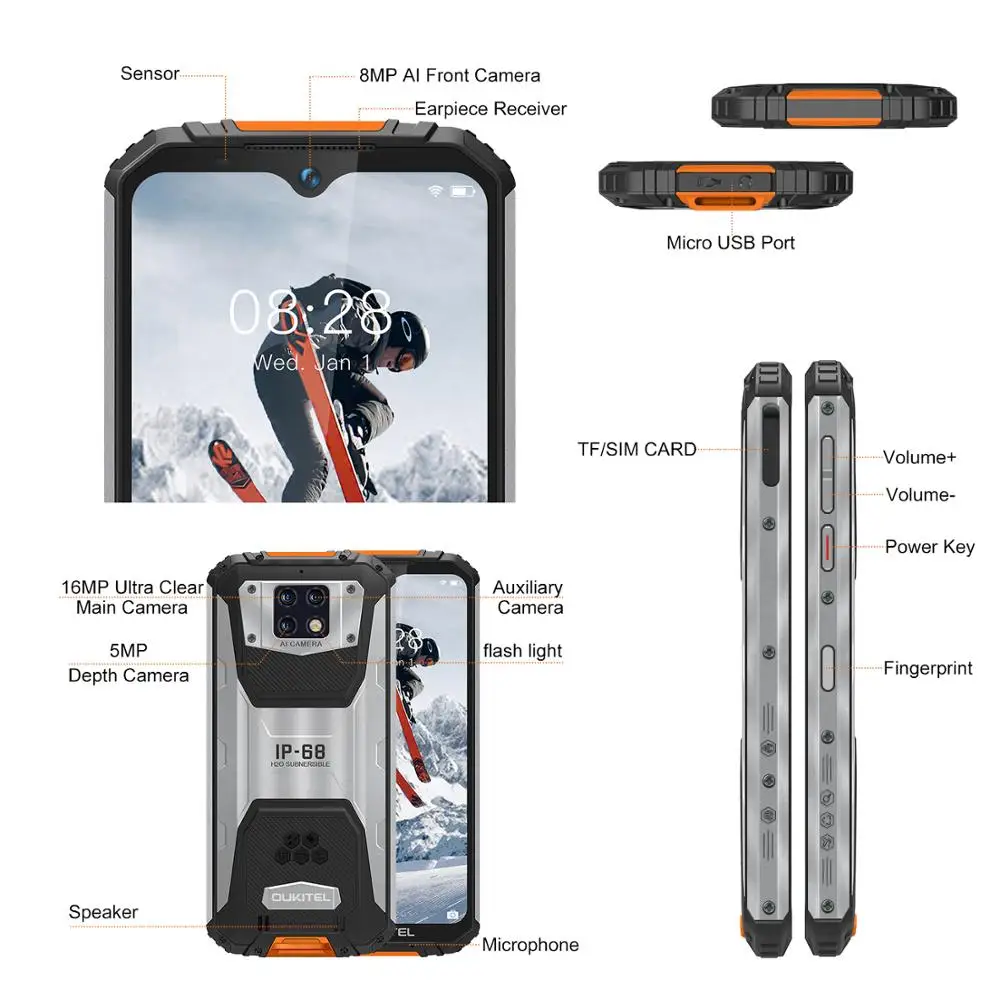 Смартфон OUKITEL WP6 защищенный, 6 + 128 ГБ, 10000 мАч, 6,3 дюйма, 8-ядерный