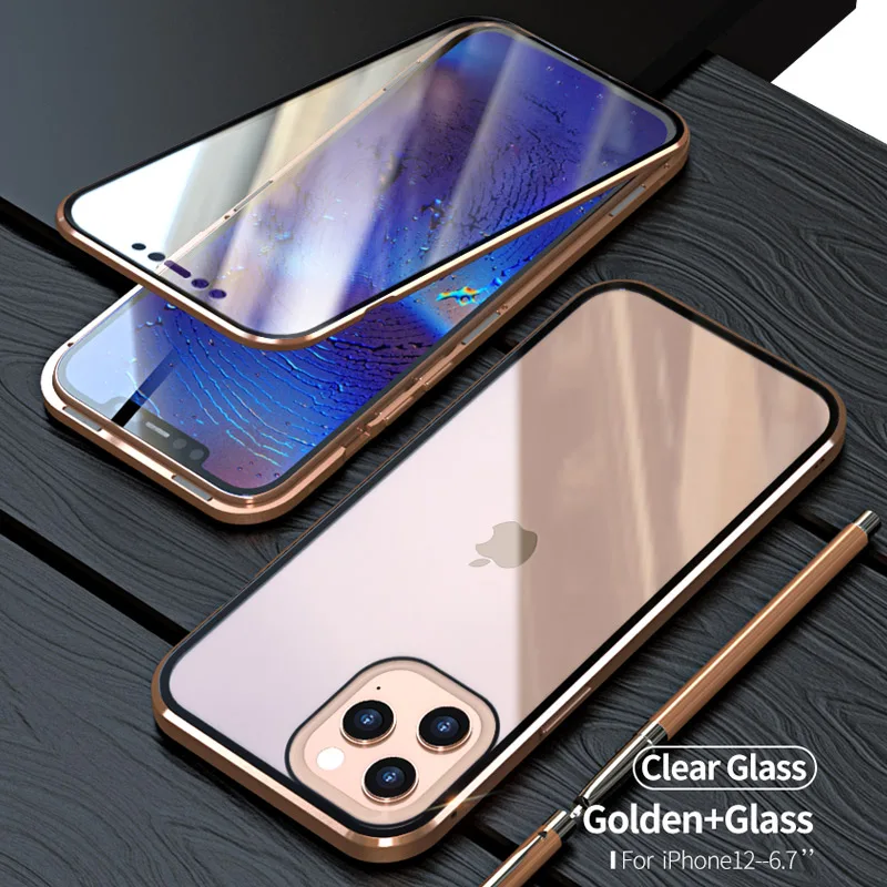 Магнитный чехол для iphone 12 Pro Max, двухсторонний чехол из закал...