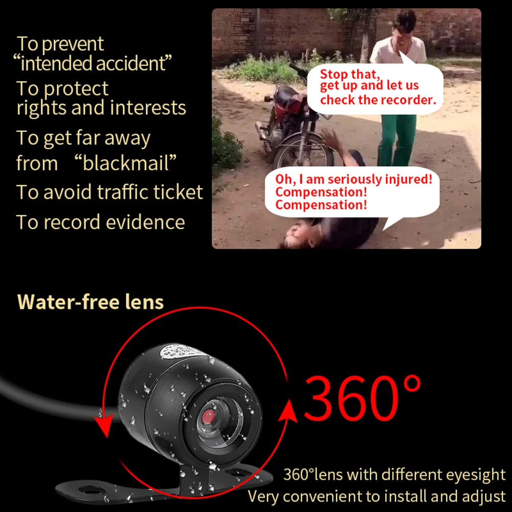 Видеорегистратор для мотоцикла 1080P HD с двумя объективами и функц...