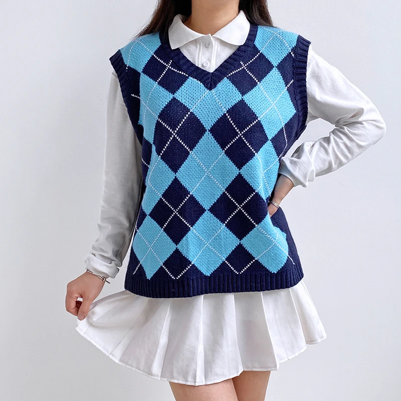 Женский трикотажный жилет, повседневный пуловер без рукавов в клетку со стразами, Осень-зима 2019