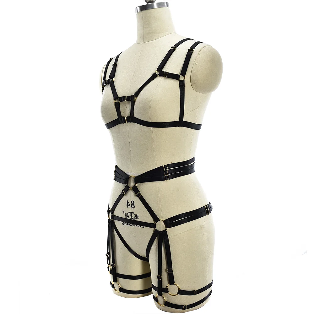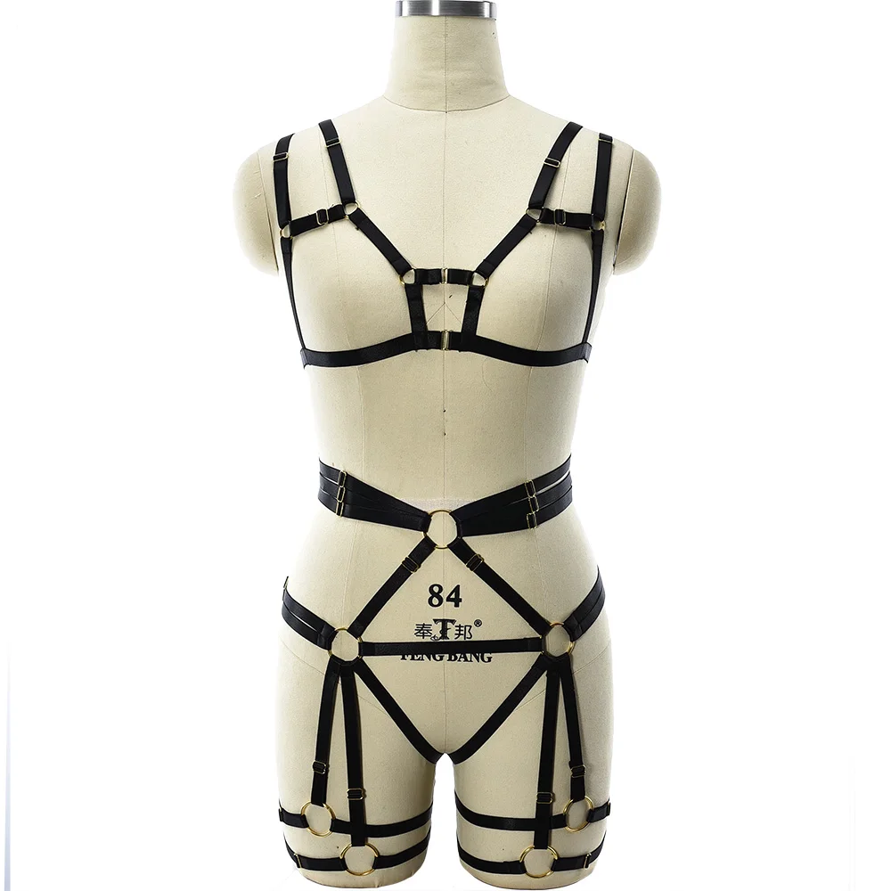 Черная обвязка для тела комплект регулировки бюстгальтер с открытой грудью, восторженные одежда сексуальное боди, женское белье бондаж чулки пояс с резинками, Фетиш клетка для тела