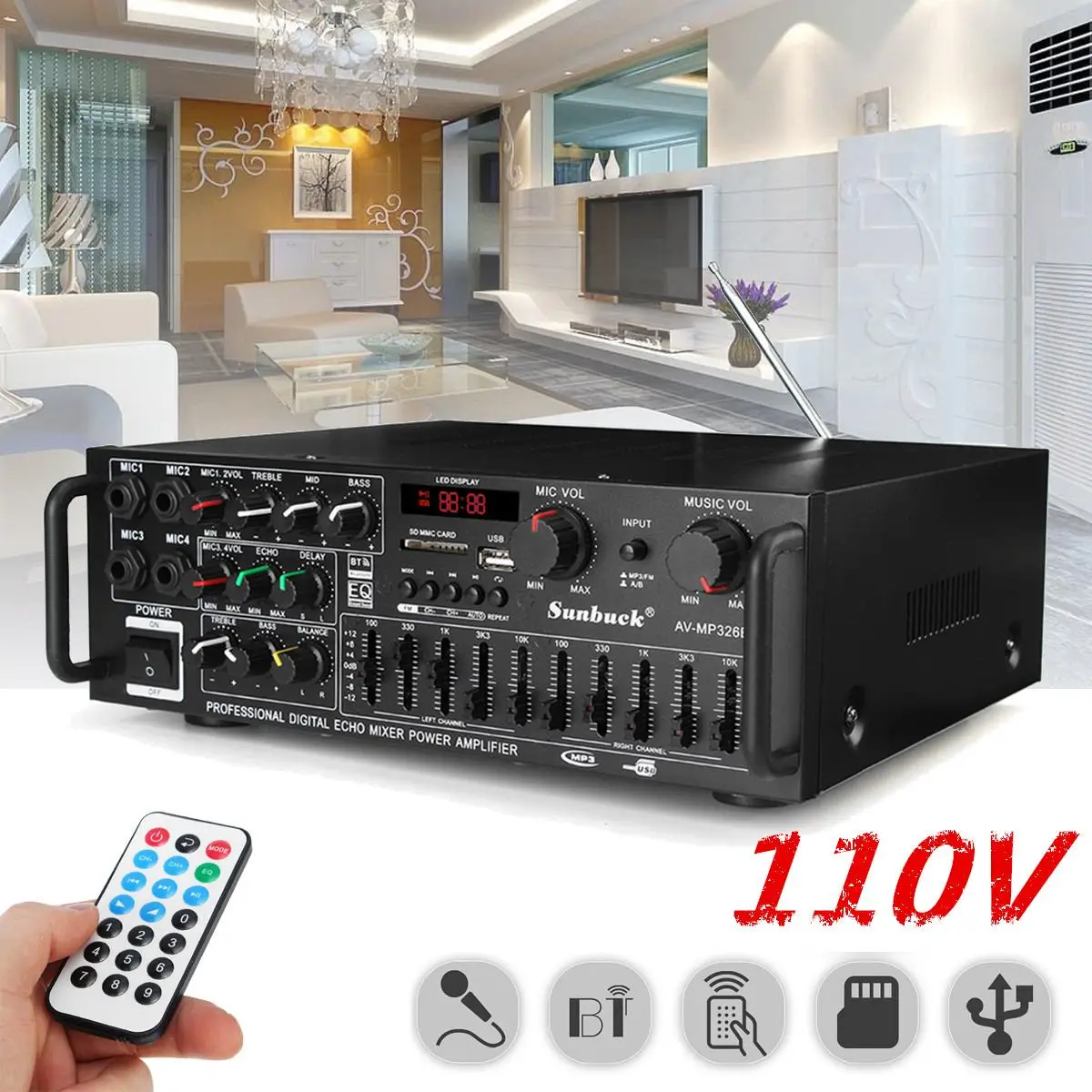 Домашние Цифровые усилители аудио 110 в бас аудио Мощность Bluetooth усилитель 2 канала Hifi FM USB SD светодиодный для сабвуфера колонки