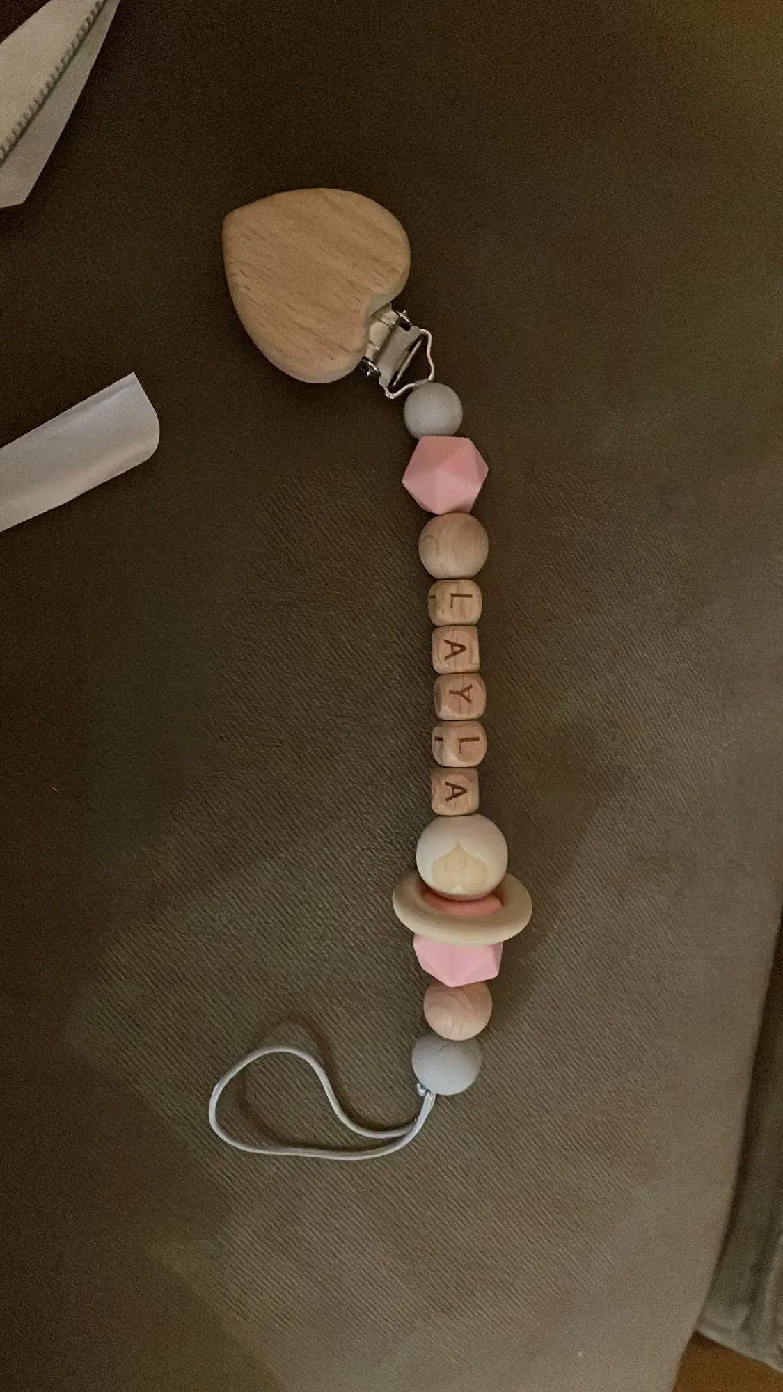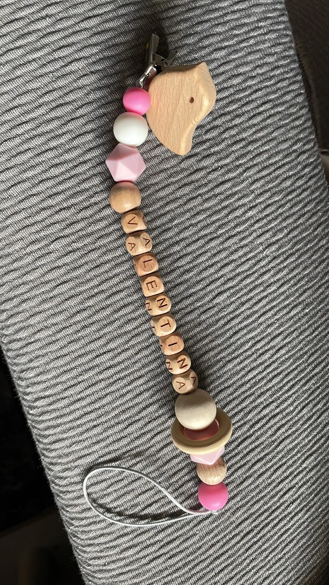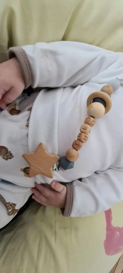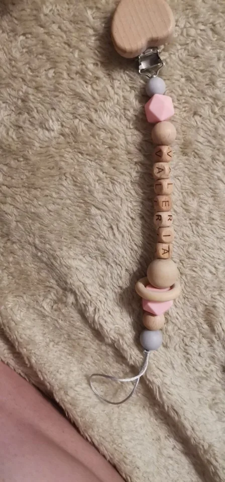 Зажим для соски с именем ребенка, силиконовые бусины из бука, зажим для соски, цепочка для соски, игрушки для прорезывателя, держатель для соски