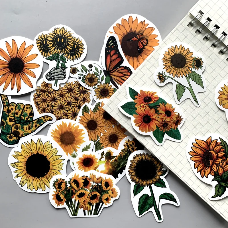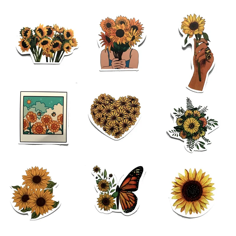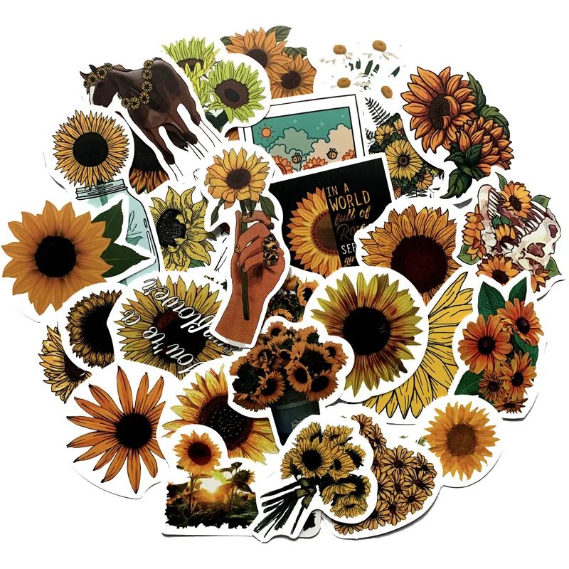 Наклейки Мультяшные в виде подсолнуха для чемоданов, скейтбордов, ноутбуков, чемоданов, холодильников, телефонов, 50 шт.