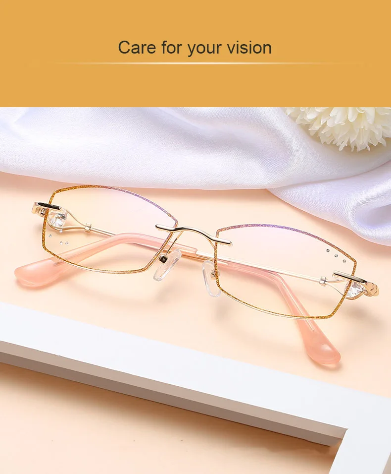 Женские очки для чтения без оправы с бриллиантовыми краями жемчужные очки для дальнозоркости с защитой от сисветильник Алмазная яркая компьютерная Лупа