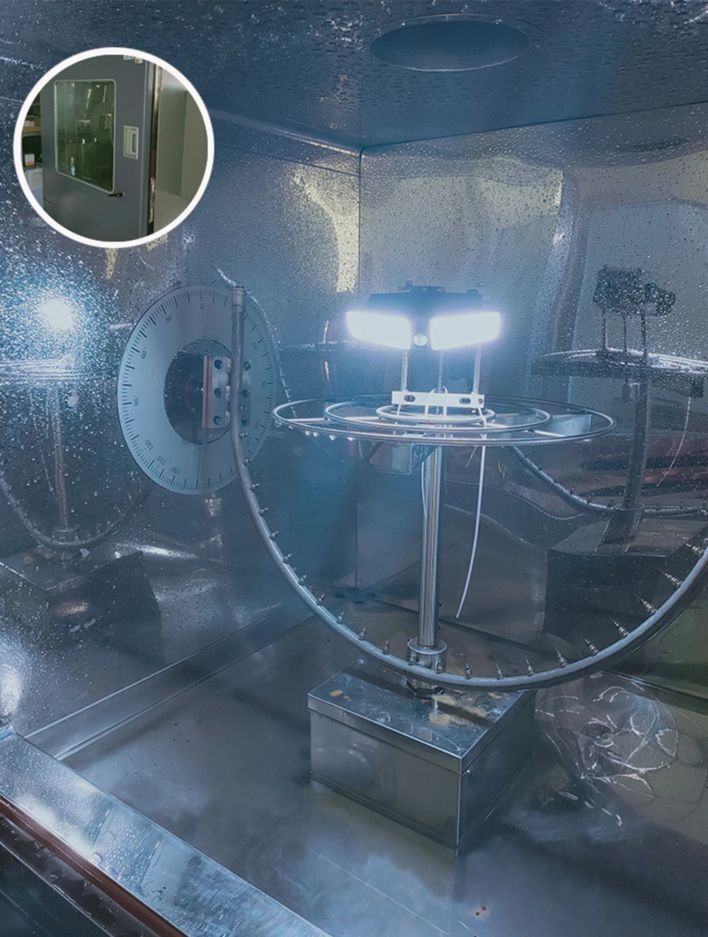 Испытание степени водонепроницаемости IP65: непрерывный распылитель для2Часов.