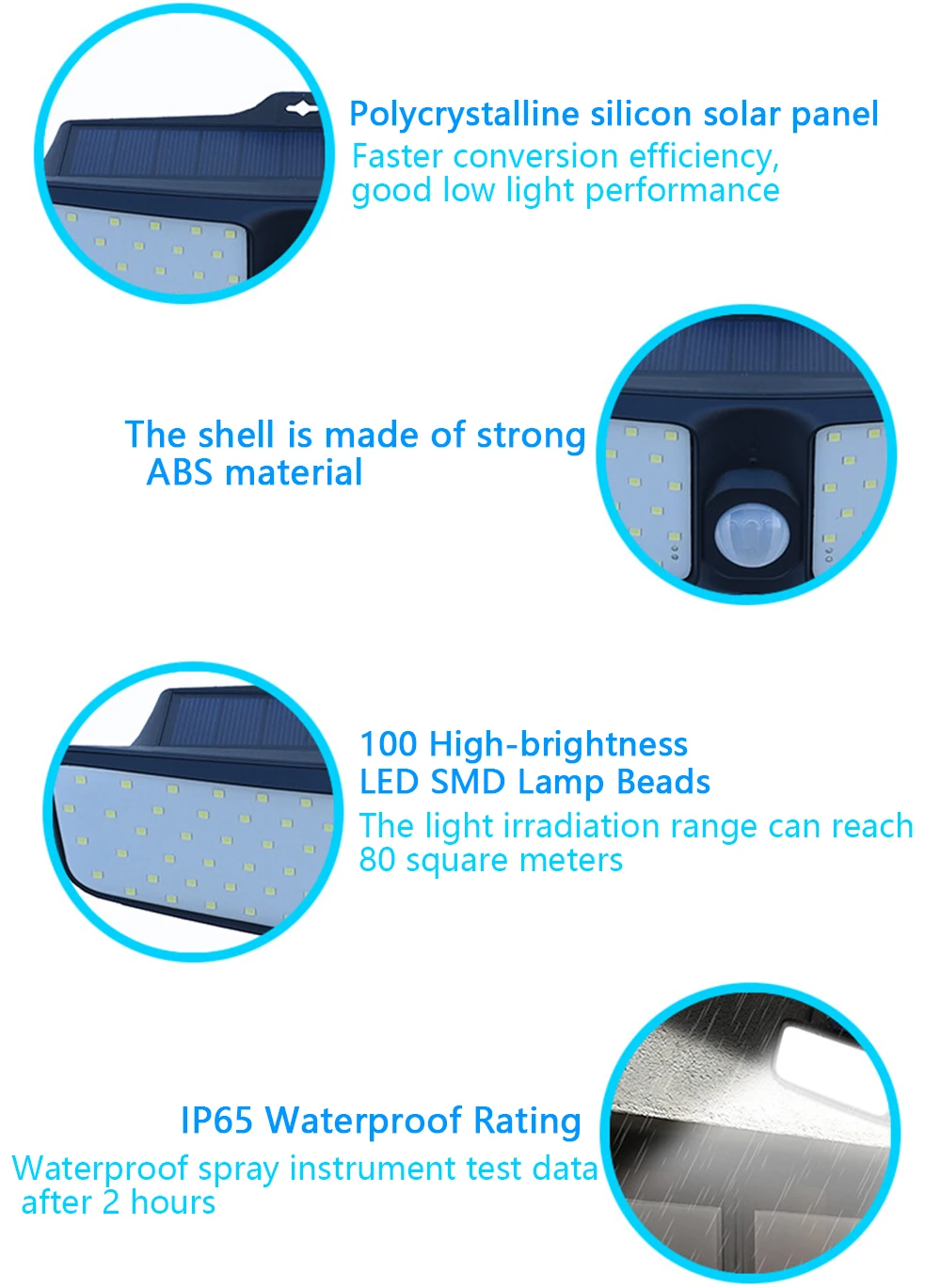 1. Название продукта: 2-сторонний настенный светильник на солнечной батарее 100 светодиодов
