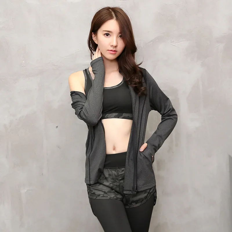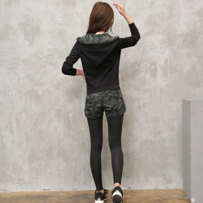 Толстовка камуфляжная Женская с длинным рукавом, рубашки для йоги, быстросохнущая спортивная куртка для фитнеса и спортзала для больших девочек, пальто для бега и пробежек