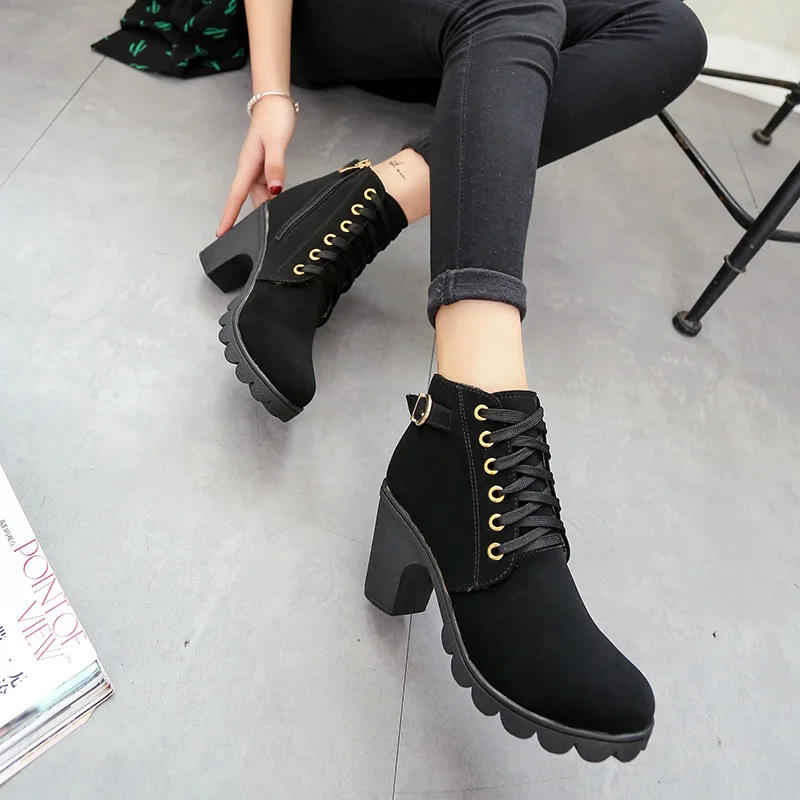 Ботинки женские на высоком каблуке, ботильоны на шнуровке, обувь из...