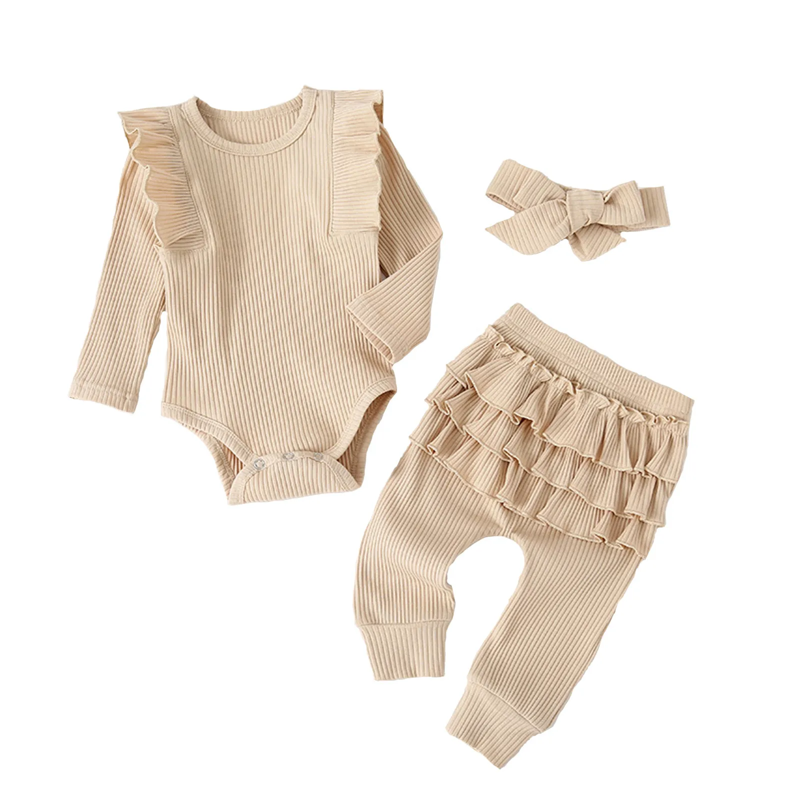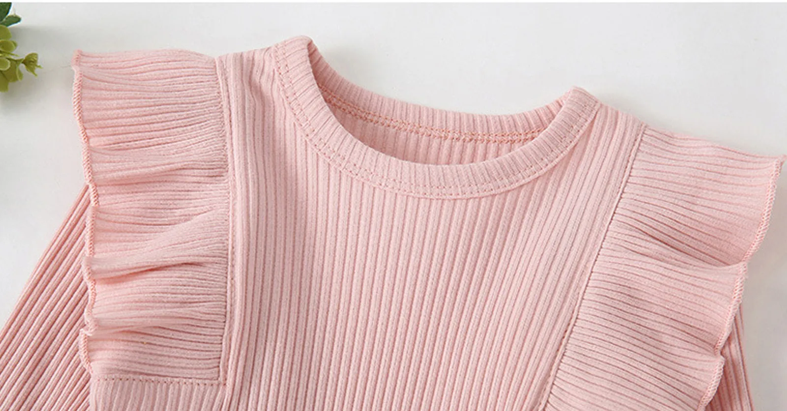 Комбинезон детский трикотажный в рубчик, с длинным рукавом и оборками