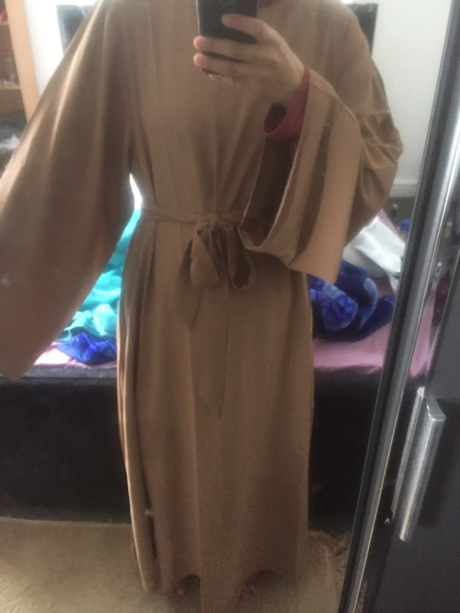 Очень красиво! Абайя на удивление на 5 дней раннее прибытие (заказали в 22,04 21, и вы на 10,05. Прибыло так 18 дней). Ткань очень удобная и не просвечивает. Не был уверен, нужен ли мне L или XL, потому что мне (171 см) действительно нужен размер XL, но отзывы о товарах размером около 170 см и размером L идеально подходят, убедил меня в покупке. У меня есть 3 цвета и все великолепные!