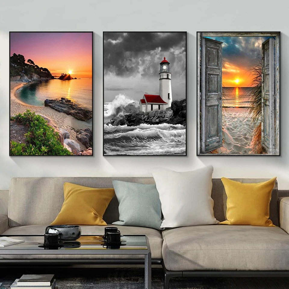 Алмазная живопись 5D, пейзаж, закат, вид на море, квадратнаякруглая вышивка, Набор для вышивки крестиком, картина, мозаика сделай сам, украшение для дома, подарок