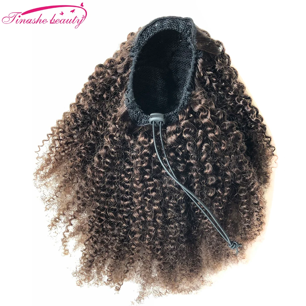 Tinashe Beauty 2 # темно-коричневый кудрявый конский хвост, натуральные малазийские человеческие накладные волосы для наращивания, конский хвост для детей