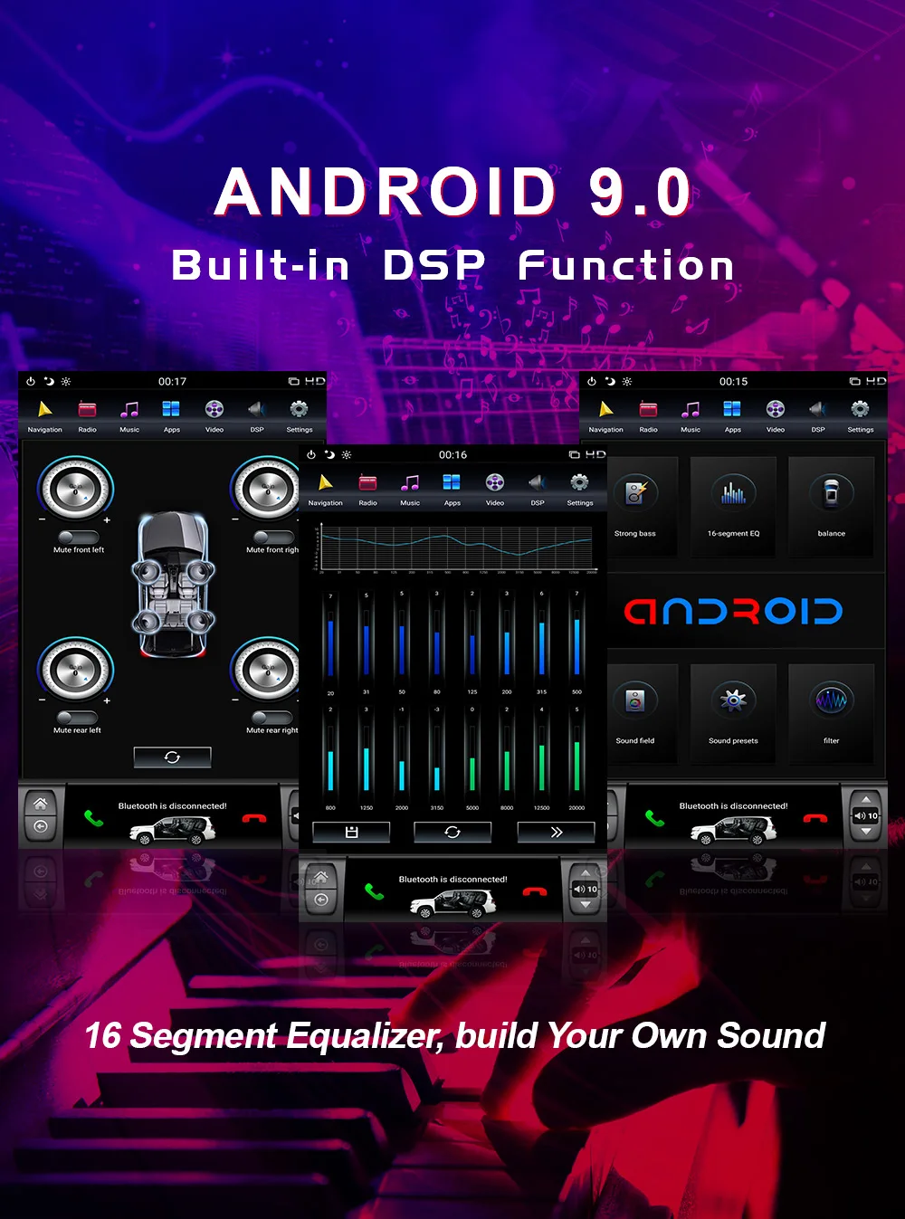 1.Android 7,1: Процессор: четырехъядерный 64 бит PX3 Оперативная память: 2 Гб DDR3 ROM: 32 ГБ 2.Android 9,0 с Carplay + DSP + IPS: Процессор: шестиядерный 64 бит PX6 Оперативная память: 4 Гб DDR3 Встроенная Память: 32 GB/64GB Разрешение экрана: 1920*1020 или выше, емкостный 5 точек Мультитач, с функцией двойной зоны Bluetooth 5,0 ручная синхронизация телефонных звонков список контактов Встроенная функция Wi-Fi (Используйте точку доступа со смартфона для подключения к Интернету) Встроенное приложение Google Play Store, загрузите приложение, которое вы хотите. Оперативная память: DDR3 4 Гб, поддержка внешней флэш-памяти 32 Гб Встроенная автономная карта GPS, поддержка онлайн-карты, поддержка Google Map. Аудиовыход 4*50 Вт, эквалайзер: 9 эквалайзеров для звука Радио чип NXP6686, AM / FM с RDS