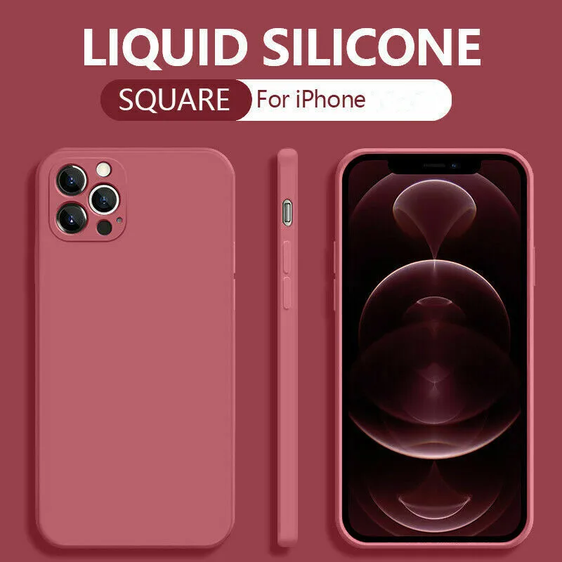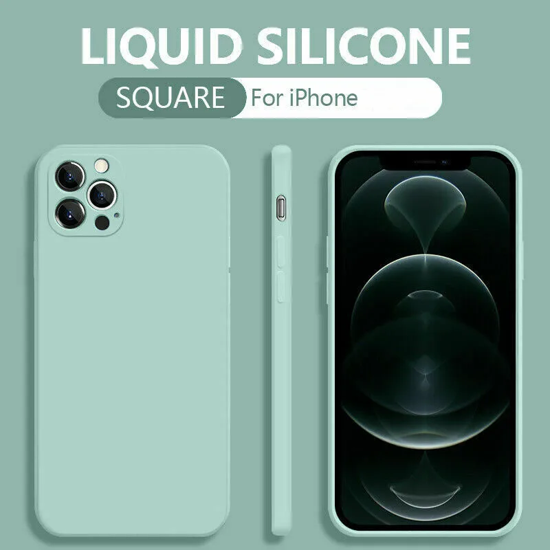 Мягкий чехол для iPhone 12, 13, 11 Pro Max, Mini, XS, X, XR, 7, 8 Plus, SE 2, однотонный, квадратный, из жидкого силикона