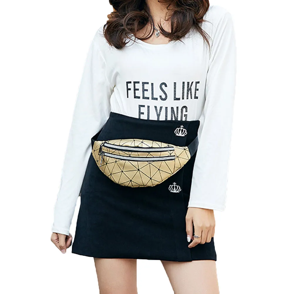 Поясная Сумка из искусственной кожи для женщин, забавная сумочка на пояс с геометрическим рисунком, Женский кошелек, портативная Фотосумка, 4 цвета