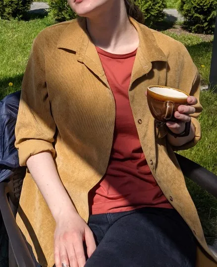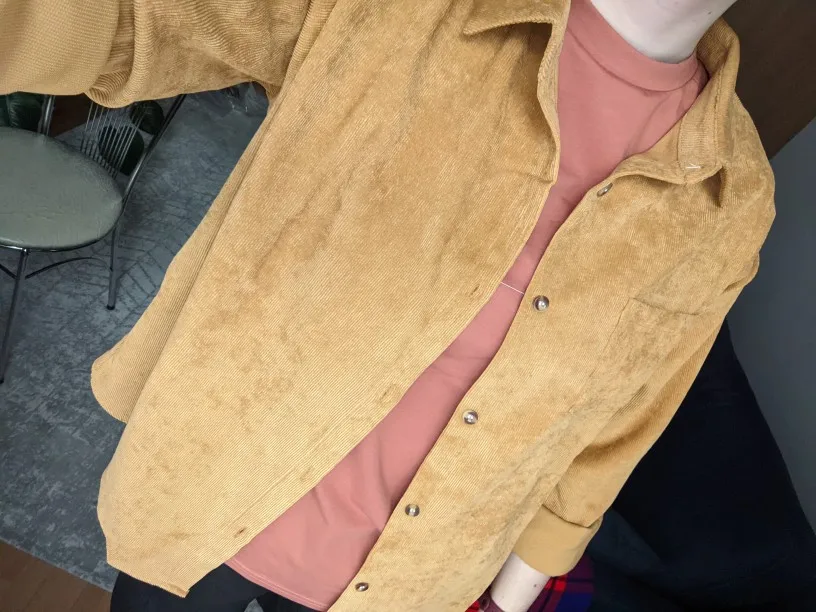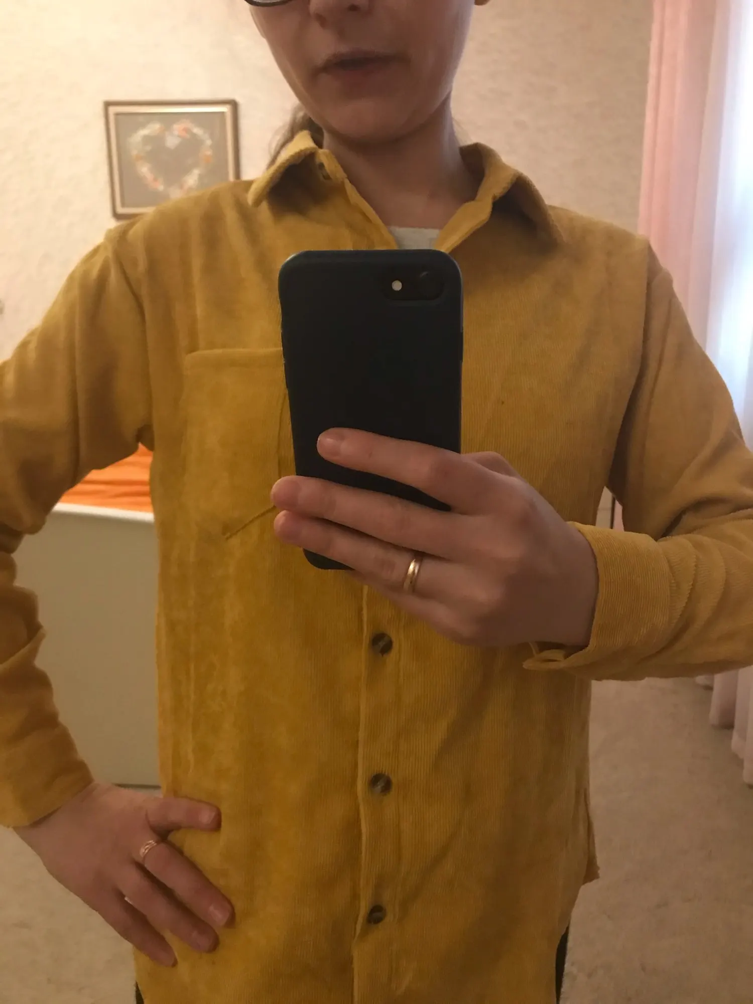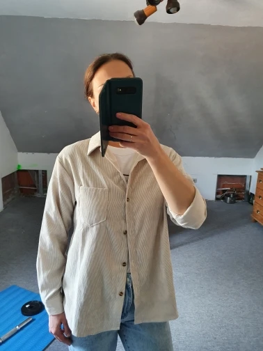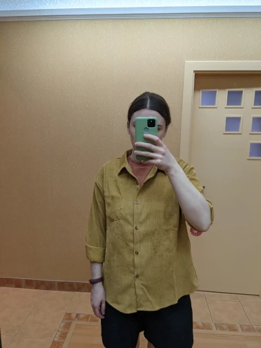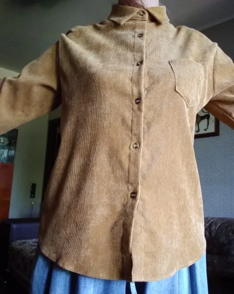 Хорошая рубашка, пошив аккуратный. Ткань синтетический вельвет в мелкий рубчик, по моему было у него название: вельветон. Цвет не такой яркий, побледнее, что и лучше.На параметры Ог-98, От-80, Об-103, подошла как раз. Я хотела немного оверсайз. Взяла чтобы носить как ветровку. Рост 173см. При узких плечах и длинных руках, рукав только-только, при поднятии руки, нет запаса на комфорт. Длина со стороны спинки больше, чем со стороны переда, перед хотелось бы немного подлиннее.Но это мои предпочтения. В целом всё устраивает. Оформление и отправка быстрые, спасибо продавцу. Доставка тоже быстрая, 9 дней. Фото на себе выложу попозже.