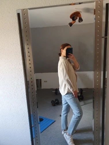 Цвет не такой яркий как на фото. Ето меня розачеровало. Доставка быстрая. Взяла s и прогадала. Лучше брать на размер больше. Из пошива все хорошо кроме кармана. Он просто пришит без обрубки края ето не видно спереди но сверху видно.