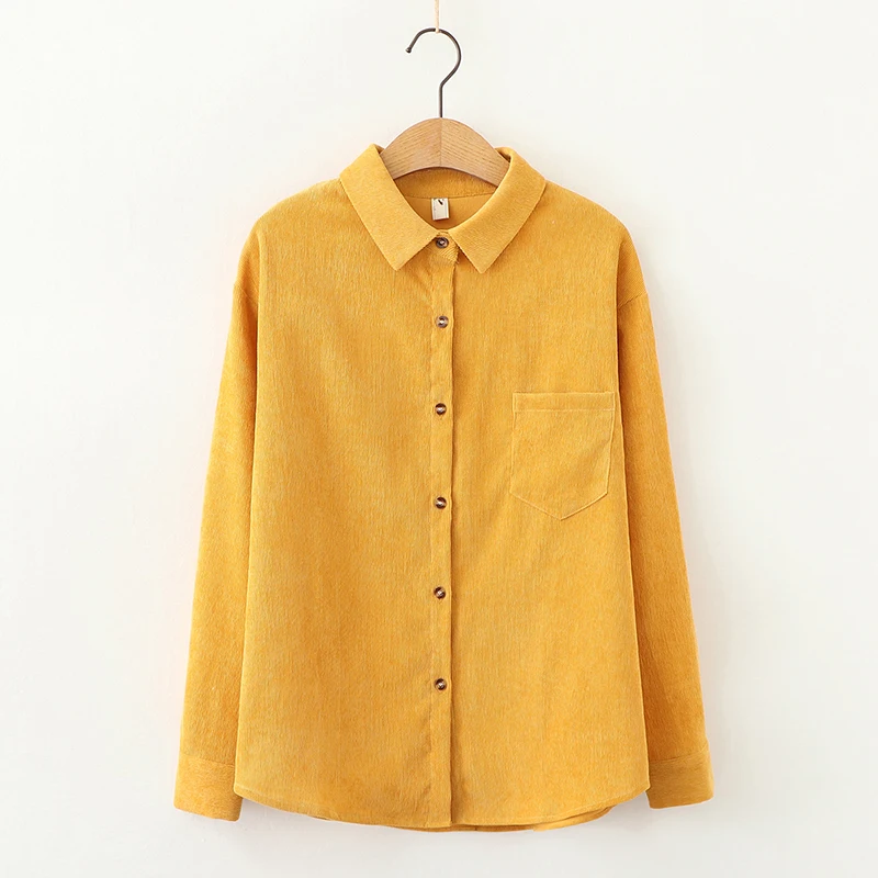 Женская Вельветовая рубашка, Повседневная Свободная блузка с длинным рукавом, осень