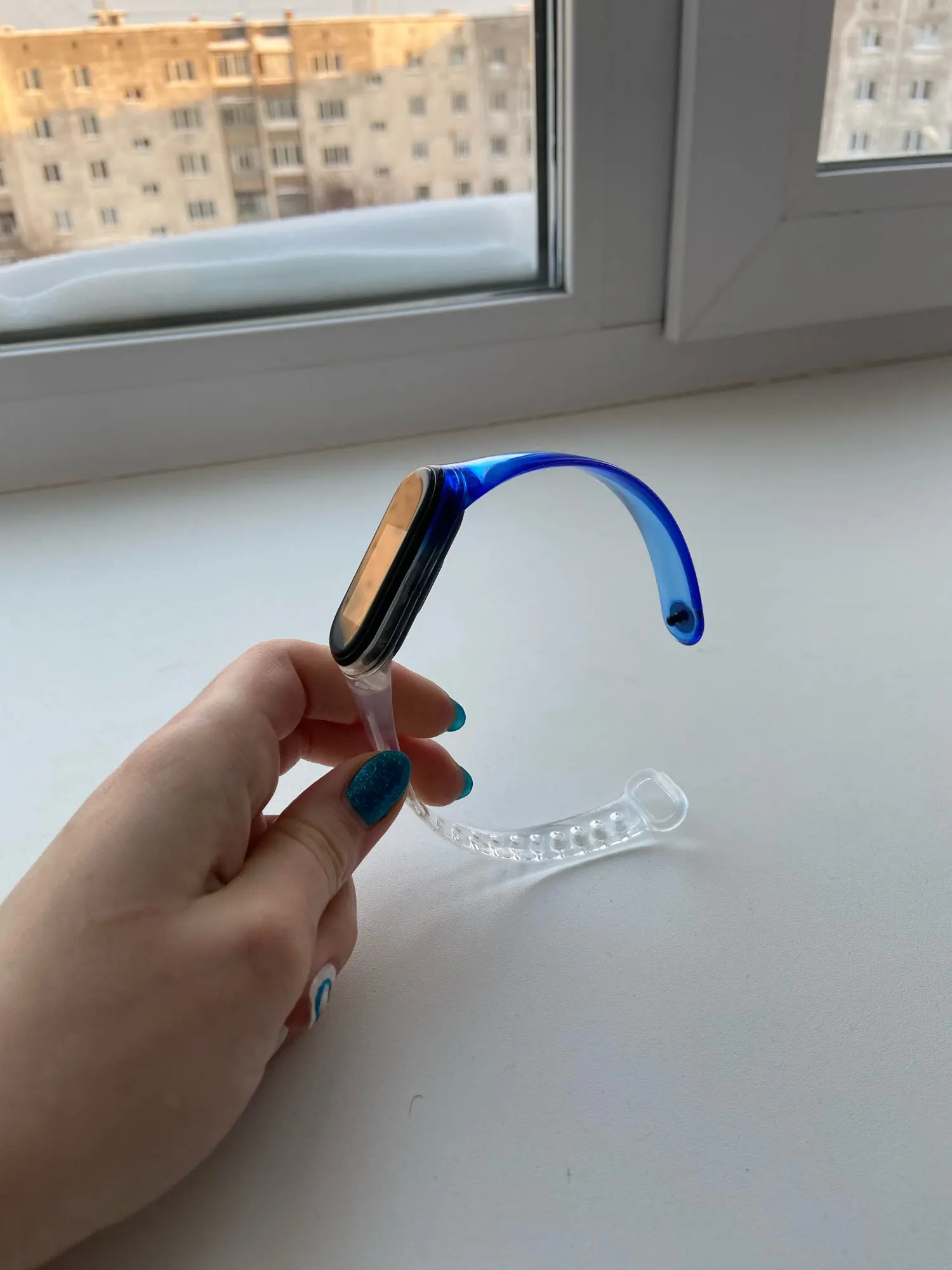 Всё, как в описании. Ремешок прозрачный. Носится комфортно, а главное - выглядит классно!