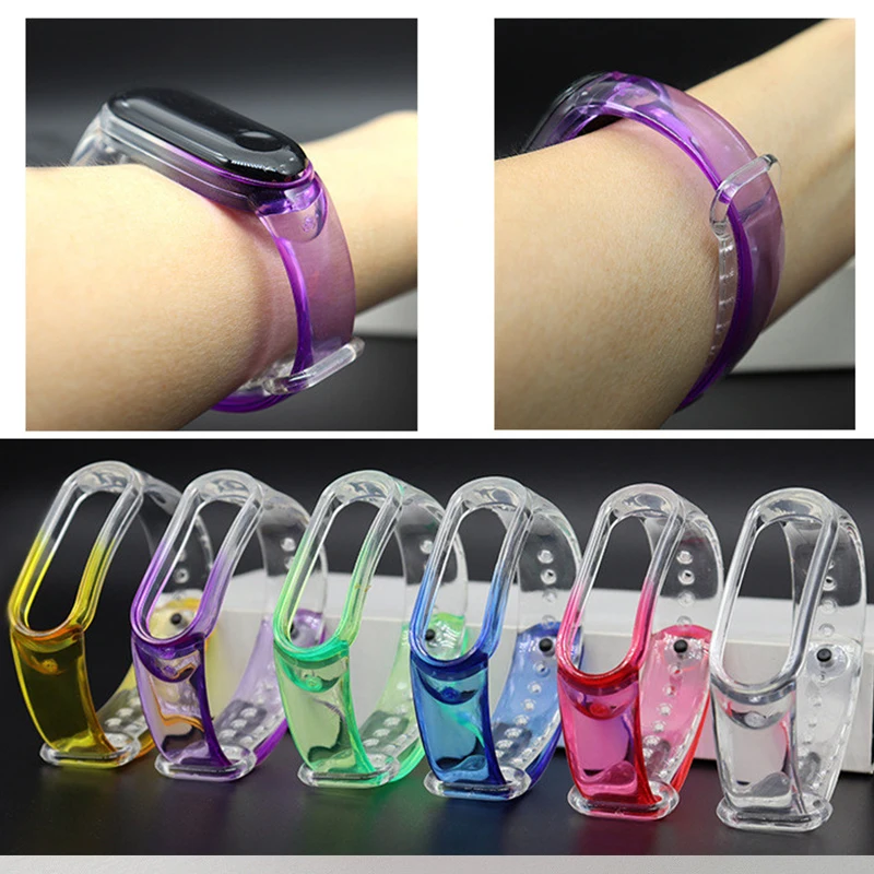 Новый модный прозрачный ремешок для часов Xiaomi Mi Band4, 3, 5, 6, силиконовый сменный ремешок для Xiaomi Mi Band5, 4, 3, 6, градиентный с