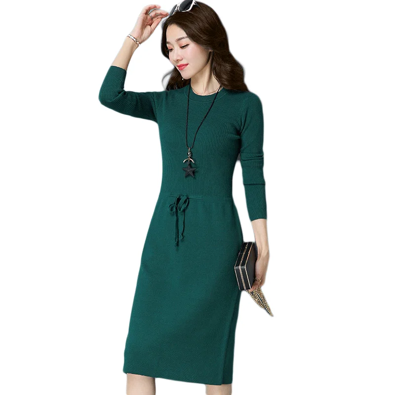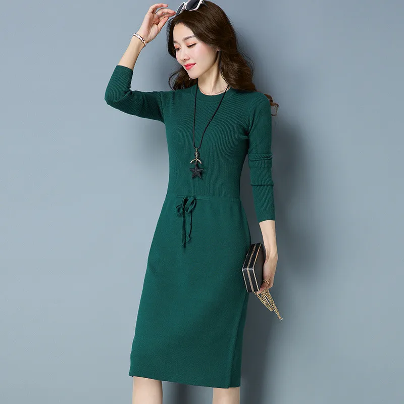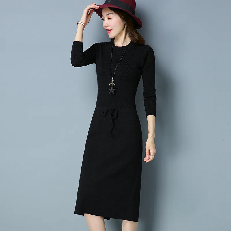 Женское длинное платье-свитер, теплые вязаные свитера, пуловеры, платья для женщин, Осень-зима 2020