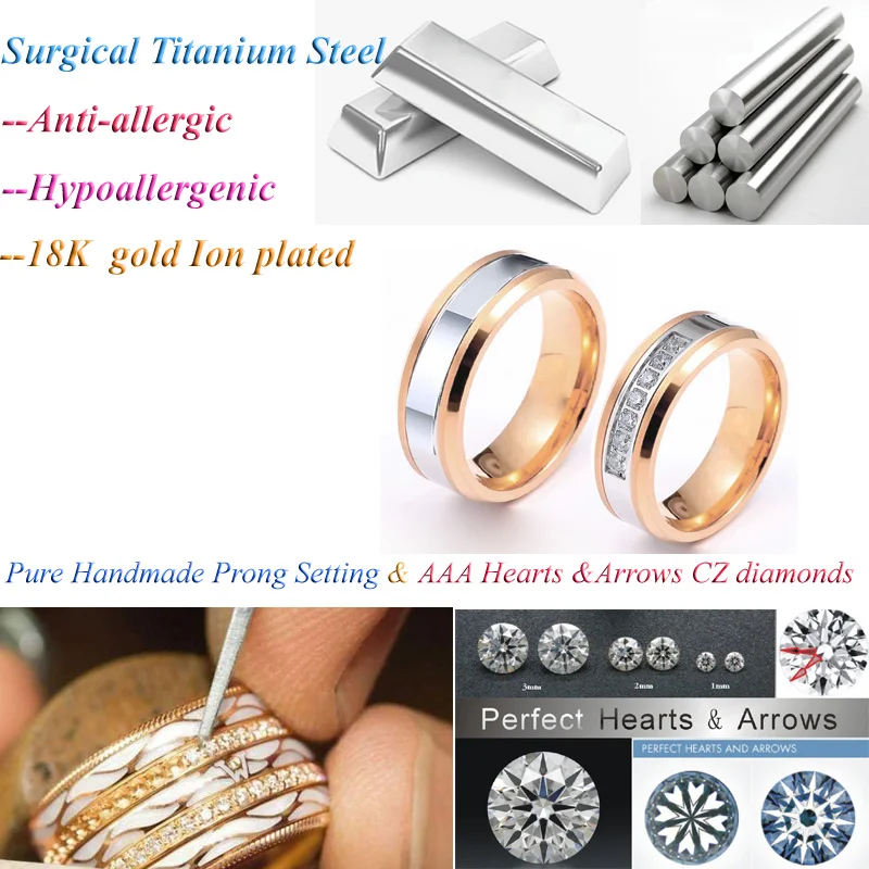Высшее качество, индивидуальные обручальные кольца для пар для мужчин и женщин, для влюбленных, для брака, 18 карат Позолоченные ювелирные изделия из нержавеющей стали, кольцо