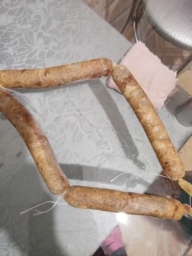 Оболочка пришла быстро, вместе с другими посылками, достаточно прочная, делали колбаски в первый раз, вроде получились, на 2-2.5кг мяса ушла вся даже чуть фарша осталось, только для нашей насадки чуть маловата в диаметре, в другой раз закажу подлиннее и по больше