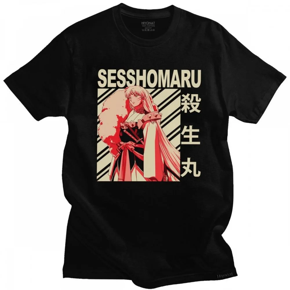 Классическая футболка с аниме Sesshomaru, Мужская хлопковая футболка с круглым вырезом и короткими рукавами, Inuyasha, футболка с мангой, топы, одежда, Merch
