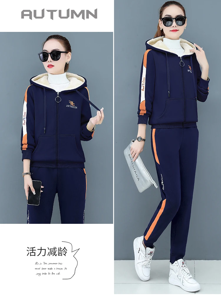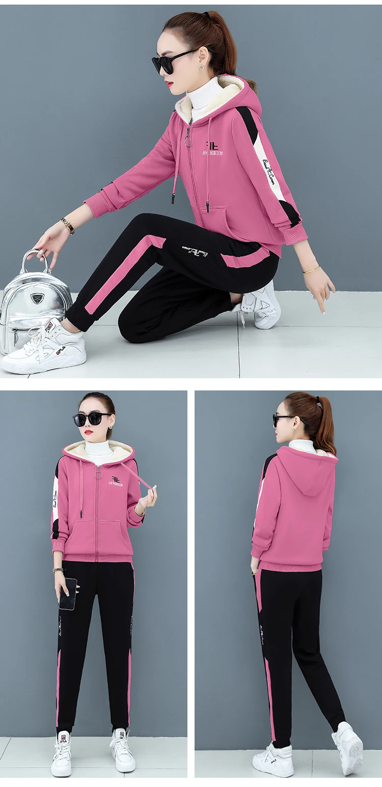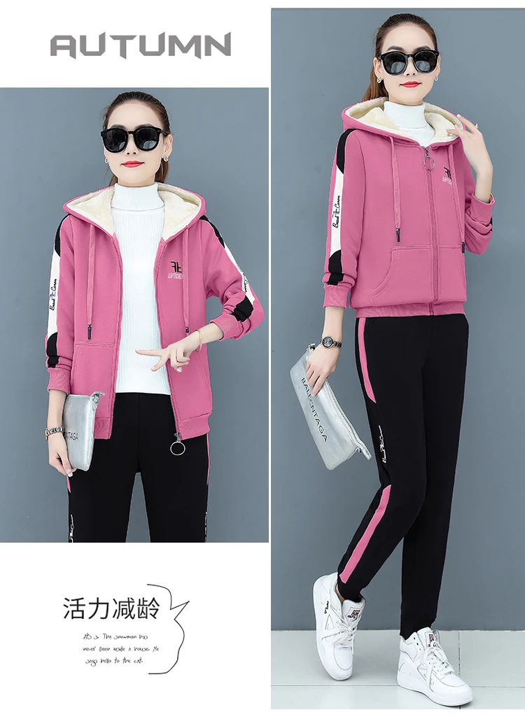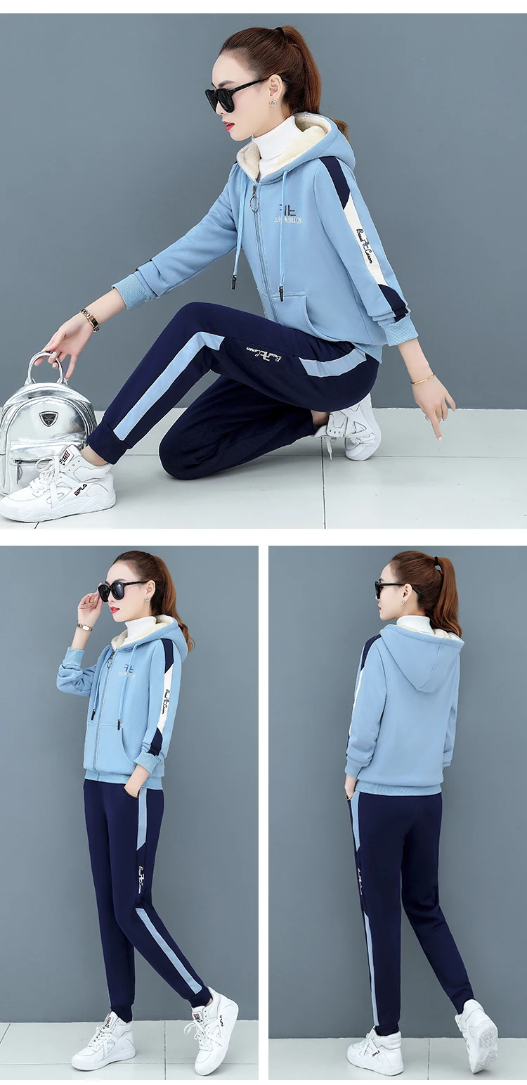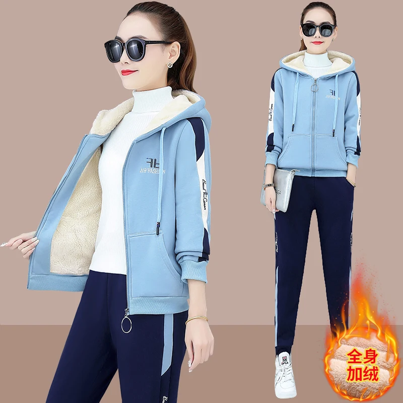 Женский Бархатный спортивный костюм, комплект из двух предметов, утепленная куртка и брюки из овечьей шерсти, большие размеры, зима 2020