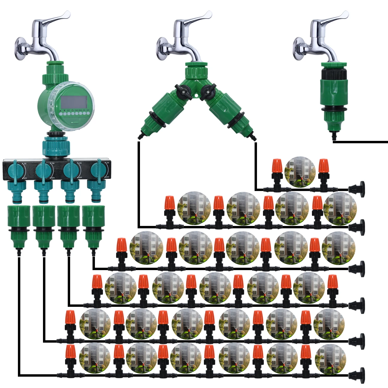 SPRYCLE 5-60M 14 ''капельного полива и орошения для полива сада охлаждения Системы комплект сплиттер 47 мм микро тумана Воронка-дриппер для парника
