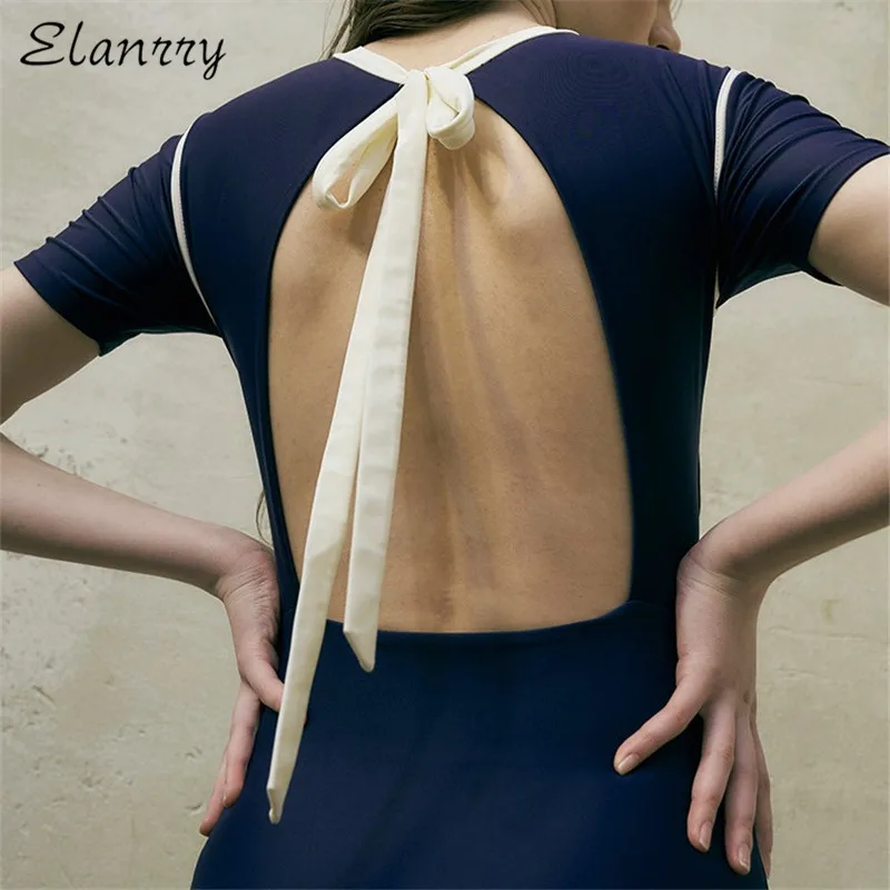 Женский слитный купальник 2020, однотонный сексуальный купальник с открытой спиной, монокини с коротким рукавом, купальный костюм с пуш-ап, пляжная одежда