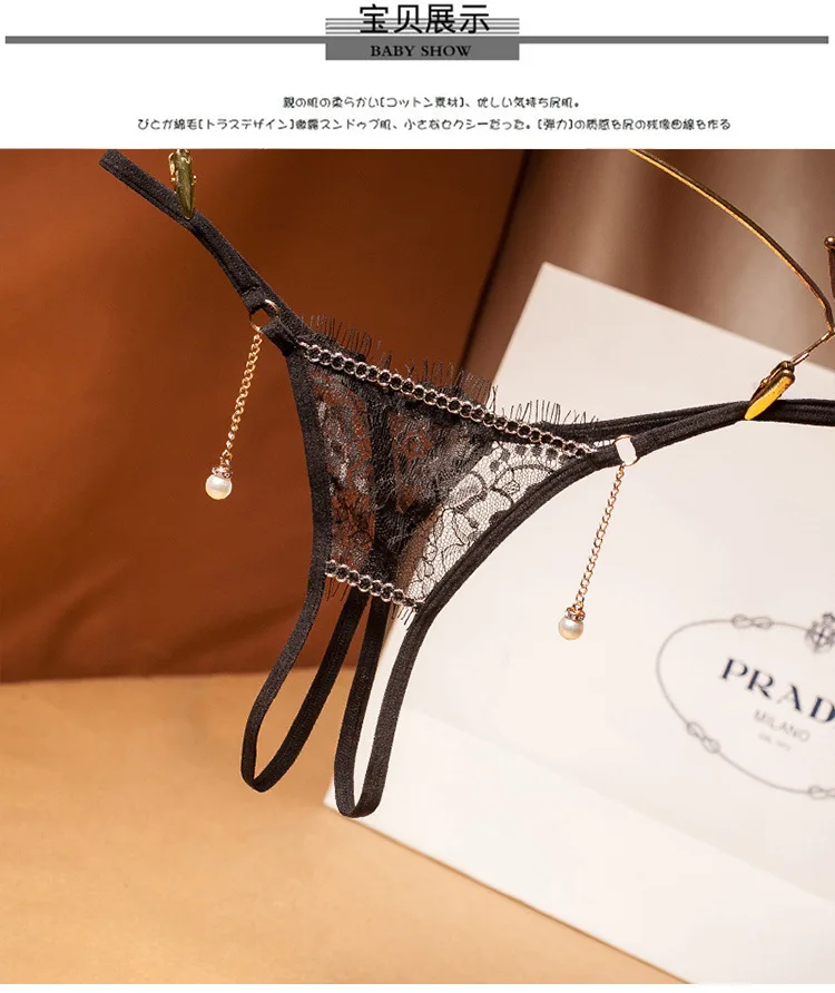 Женские сексуальные кружевные прозрачные дизайнерские стринги с Т-образным ремешком и жемчугом