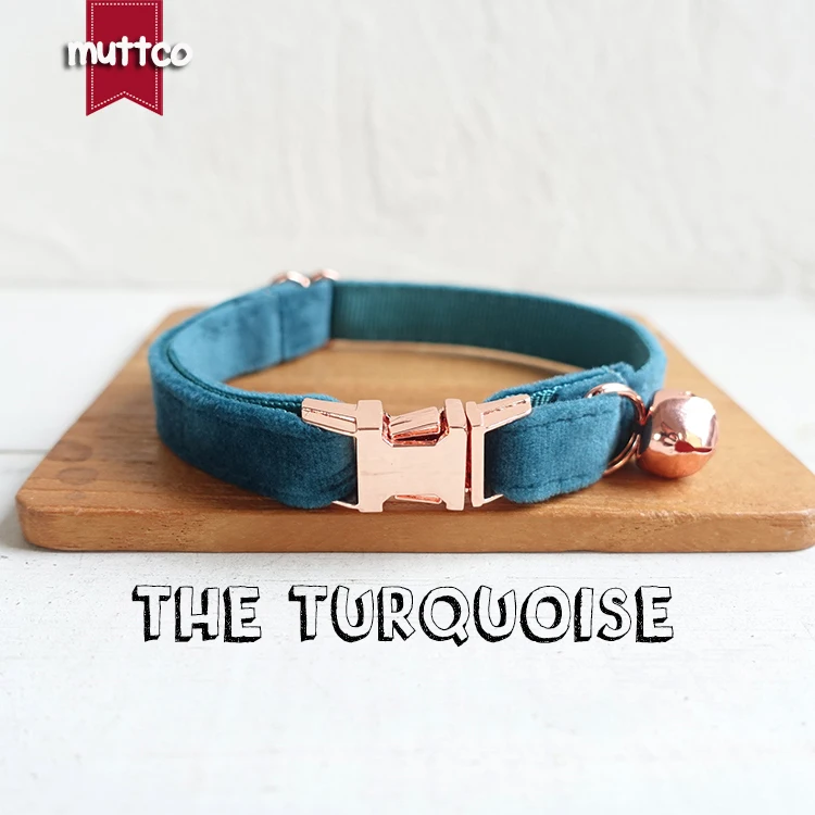 Розничная продажа, воротник MUTTCO из розового золота с металлической пряжкой высокого качества для кошки Бирюзовый дизайн, воротник для кошки 2 размера UCC097M