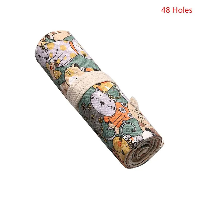 1224364872 отверстия холст школьный пенал Чехол Roll Up Карандаш Че...