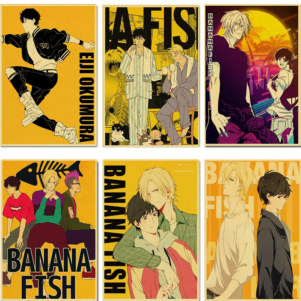 Классическая короткая футболка с героями из японского аниме Банановая рыба 02 ретро постер наклейки на стену для Гостиная домашний бар украшения искусства
